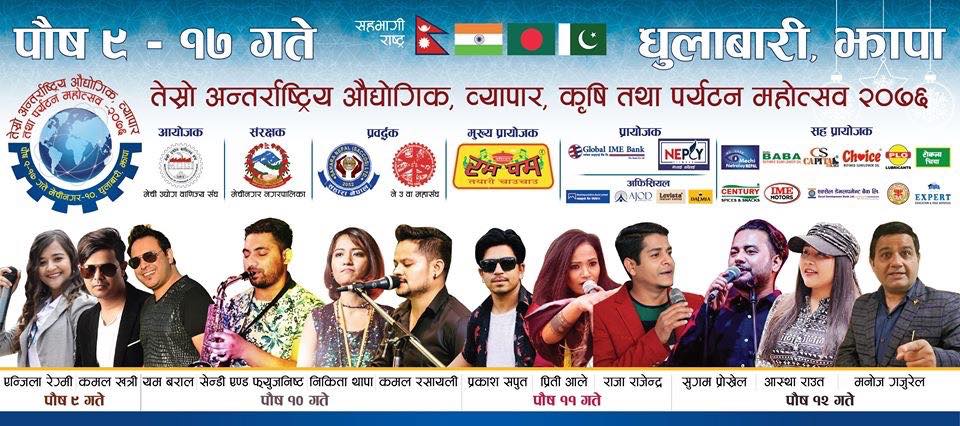 मेचीनगरकाे धुलाबारीमा पुष ९ गतेदेखि सुरू हुन लागेको तेस्रो अन्तर्राष्ट्रिय औद्योगिक, व्यापार तथा पर्यटन महोत्सवको सम्पूर्ण तयारी अन्तिम चरणमा पुगेको छ । मेची उधोग बाणिज्य संघको आयोजनामा हुनलागेको महोत्सवको सम्पूर्ण तयारी पुरा भईसकेको आज साेमबार आयोजित पत्रकार भेटघाट कार्यक्रममा संघका अध्यक्ष ऋषीराज तिम्सिनाले जानकारी गराएका छन् । महाेत्सवमा व्यापार प्रवर्द्धनका लागि बनाइएका स्टलहरू बुक भैसकेकेले केहि थप स्टलहरू बनाउने तयारी भइरहेकाे जनाएकाे छ ।