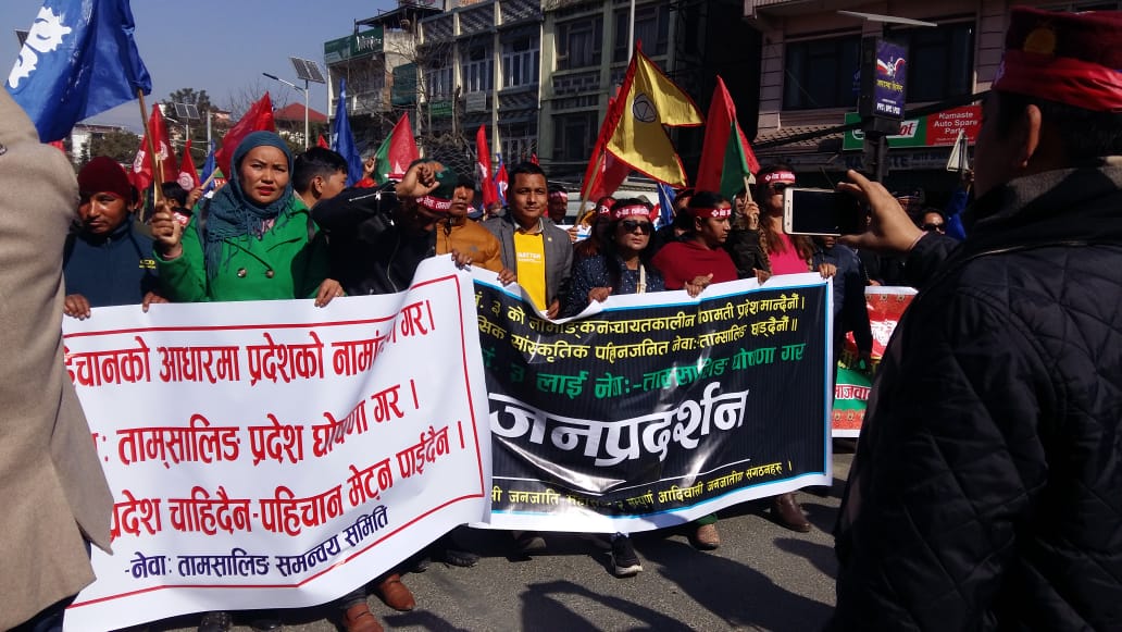 उनीहरुले बागमती प्रदेश चाहिँदैन, पहिचान मेट्न पाइँदैन भन्दै नारावाजी समेत गरे । प्रदर्शनमा नेपाल तामाङ घेदुङ, किरात याक्थुङ चुम्लुङ, किरात राई यायोक्खा लगायत जातीय संस्थाले ब्यानर सहित सहभागी भएका थिए । नेपाल आदिवासी जनजाति महासंघ लगायत विभिन्न संघसंस्थाका प्रतिनिधिको सहभागिता रहेको प्रदर्शनमा पहिचान र ऐतिहासिकताको आधारमा प्रदेश ३ को नामाकरण नेवा-ताम्सालिङ राख्नुपर्ने माग गरिएको थियो ।