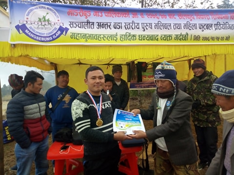 यस्तै महिला फुटबलमा बिजेताले ३० हजार, उपबिजेताले २० हजार ट्रफी म्याडल प्रमाणपत्र प्राप्त गर्नेछन । प्रतियोगिता माङसेबुङ गाउँपालिका खेलकुद विकास समितिको आयोजनामा वार्षिक रुपमा सञ्चालन हुदै आएको छ । बुधबार देखी जारी प्रतियोगिता माङसेबुङ गाउँपालिका वडा नंं। २ को डोलटार खेलमैदानमा भइरहेको छ ।