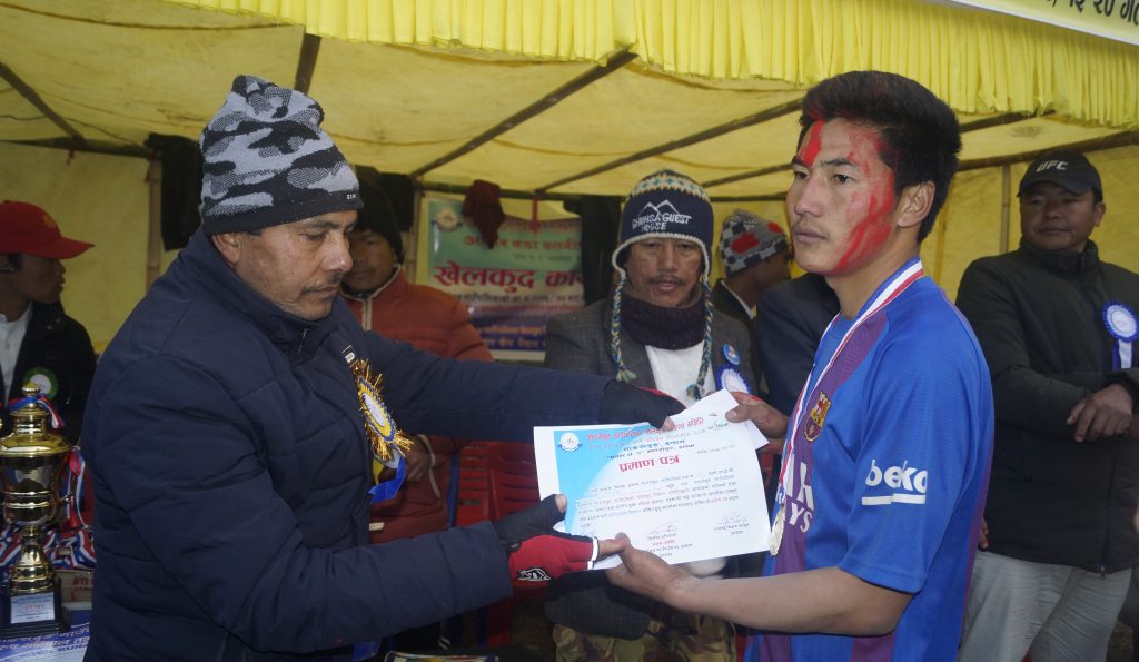 खेलको सवोत्कृष्ट सटर वडा नं. २ का सञ्जय काफ्ले, उदयीमान खेलाडी वडा नं. ३ का रोनिश राई, सवोत्कृष्ट डिफेन्डर वडा नं. ६ का अन्जान राई, सवोत्कृष्ट लिफ्टर वडा नं. २ का सारुन लिम्बु घोषित भए । उनिहरुलाई नगद सहित प्रमाण पत्र, म्याडल प्रदान गरिएको हो ।