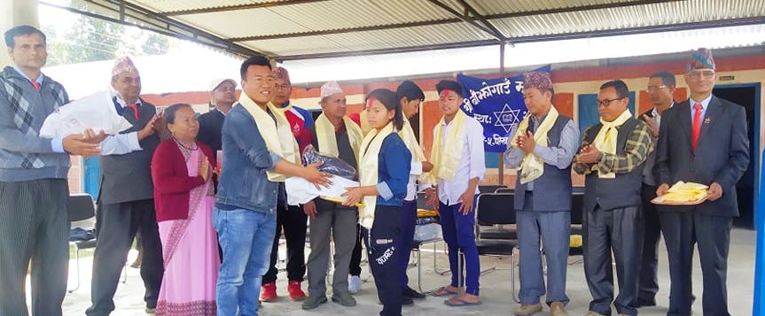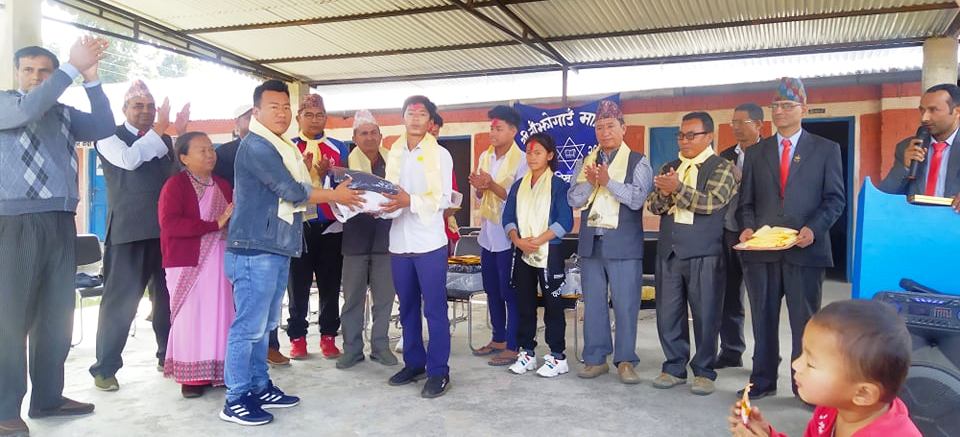 चुलाचुली गाउँपालिकाका अध्यक्ष प्रदिपचन्द्र राईकाे स्वकिय सचिव समेत रहेकाे रहेका छन् । बाझाेगाउँ विद्यालयमा आज आइतबार भएकाे एक कार्यकमबीच उक्त सामग्री वितरण गरिएकाे विद्यालयका प्रधानाध्यापक गणेष अधिकारीले जानकारी गराए । कार्यक्रममा खेलाडीहरुलाई बधाई सहित बिदाई गरिएको थियो ।