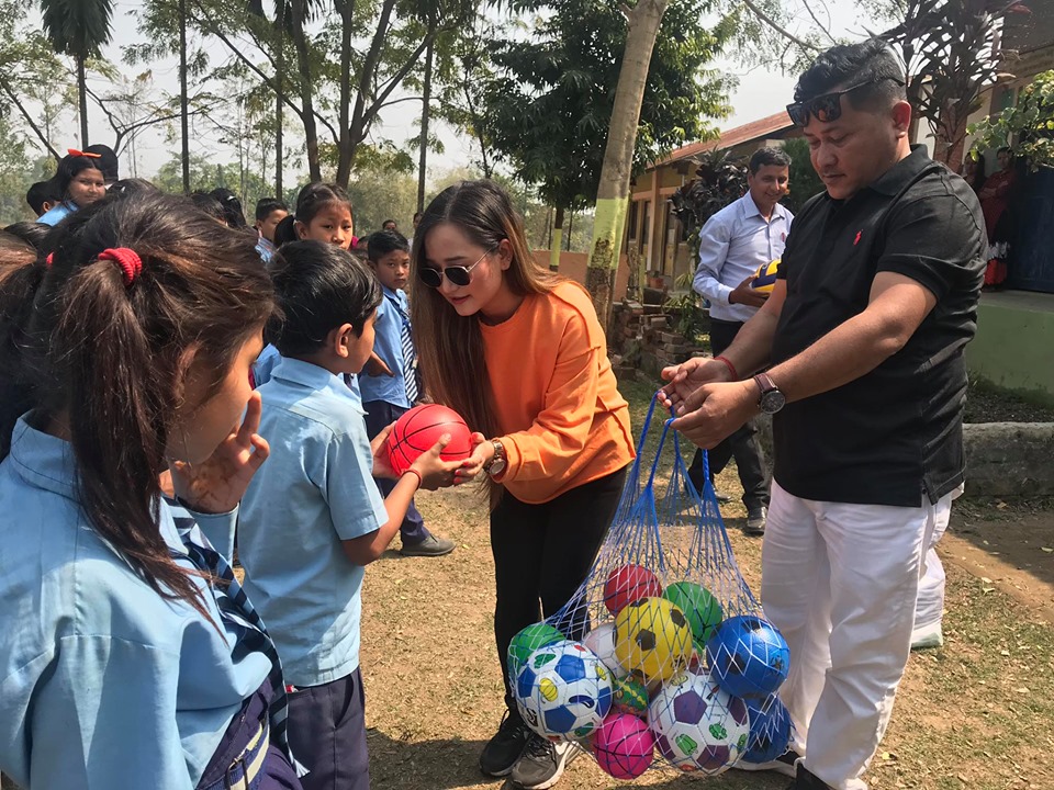 मेचीनगर खेलकुद विकास समिति संयोजक तथा मेचीनगर वडा नम्बर ४ का वडा अध्यक्ष नविन बराल, मेचीनगर खेलकुद विकास समिति सदस्य भूमिका सुब्बा, सञ्चारकर्मी सचित आनन्द सुब्बासहित गायिका राई विद्यालय परिसरमा पुगेर उक्त सामाग्री प्रदान गरेकी हुन ।