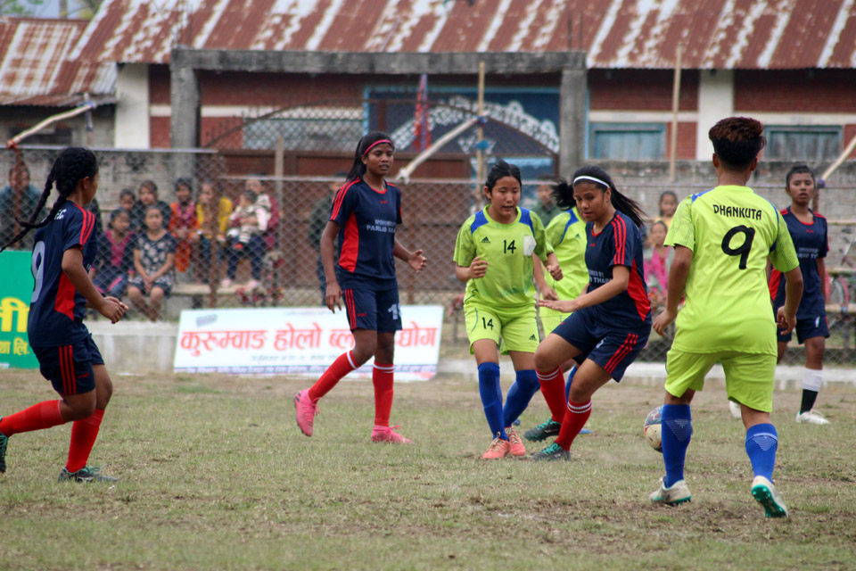 झापा । टाइब्रेकरमा पारिजात महिला फुटबल क्लब झापालाई पाखा लगाउँदै धनकुटा जिल्ला फुटबल संघ यहाँ जारी १ नम्बर प्रदेशस्तरीय महिला फुटबल प्रतियोगिता सुखानी सहिद स्मृति गोल्डकपको सेमिफाइनलमा प्रवेश गरेको छ । पाहुना टोली धनकुटाले ४–३ गोलअन्तरमा पराजित गर्दै दनकुटाले उपाधिमाथि दाबेदारी प्रस्तुत गरेको हो ।