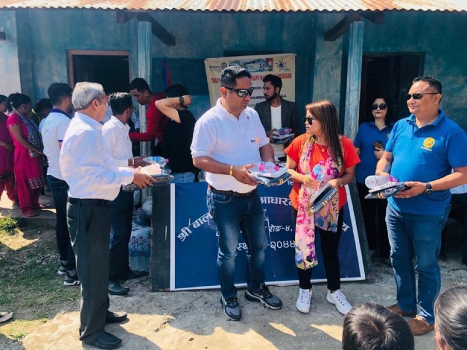 रोङ–४ मा रहेको बाल कल्याण आधारभूत हल्लुडे र गणेश आधारभूत ओझेलीमा पुगेर ट्रयाक सुट र शैक्षिक सामग्री वितरण गरिएको हो । इलामको दक्षिणी क्षेत्रमा रहेको विद्यालयमा सरकारी निकाय तथा अन्य सहयोगी संस्थाको खासै पहुँच नपुगि रहेका बेला बिर्तामोडको रोटरी क्लबले सहयोग गरेका हो ।