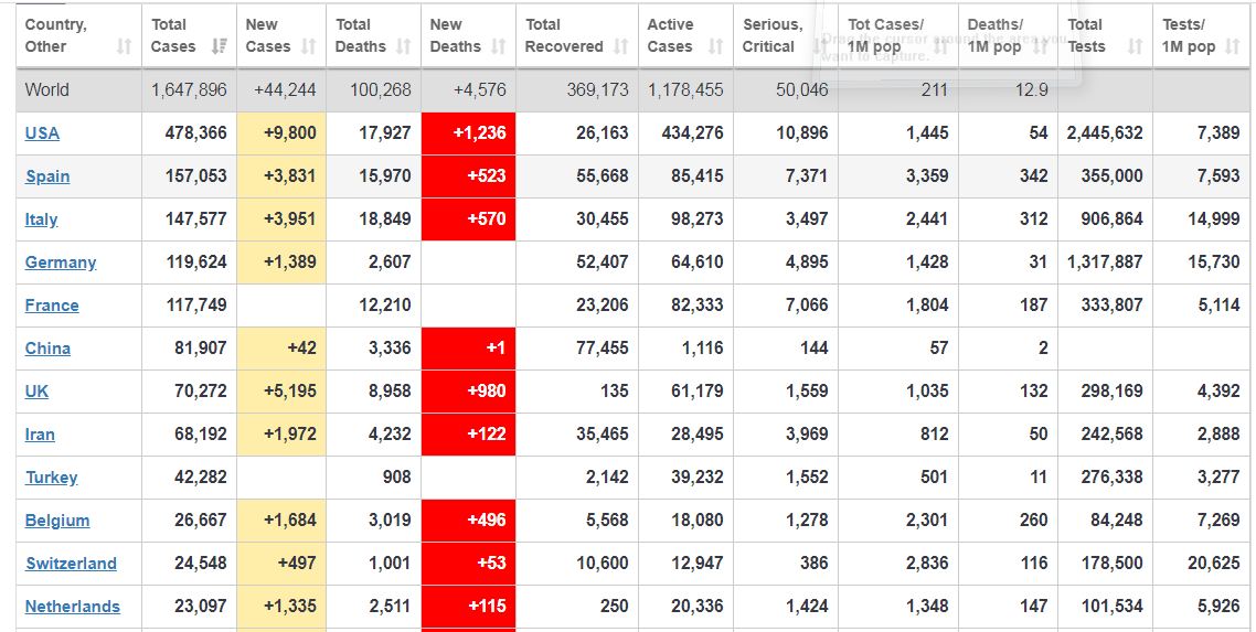 हरप्रहरव्यूराे, २८ चैत्र । काेराेना भाइरसका कारण १ लाख २ सय ६८ जनाकाे मृत्यु भइसकेकाे छ । संक्रमित संख्या १६ लाख ४७ हजार ८ सय ९६ जना संक्रमित भइसकेकाे छ ।