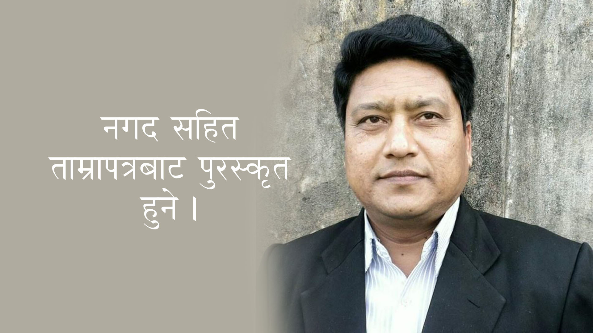 उनलाई आगामी जेठ १६ गते नगद ११ हजार १ सय ११ रुपैयासहित ताम्रापत्र र दोसल्ला ओढाएर पुरस्कृत गर्ने प्रतिष्ठानका अध्यक्ष शिब किरातीले जानकारी दिए ।
