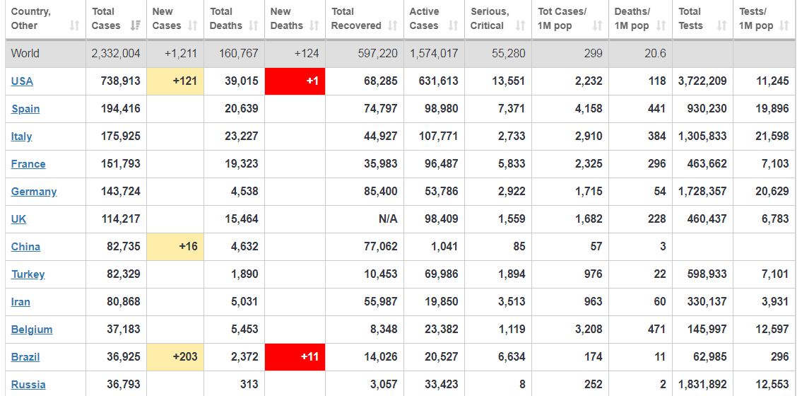 अमेरिकामा मात्र ३९ हजार १५ जनाकाे काेराेनाका कारण मृत्यु भइसकेकाे छ भने संक्रमित संख्या ७ लाख ३८ हजार ९ सय १३ जना पुगेकाे वल्डाेमिटरमा उल्लेखि गरिएकाे छ ।