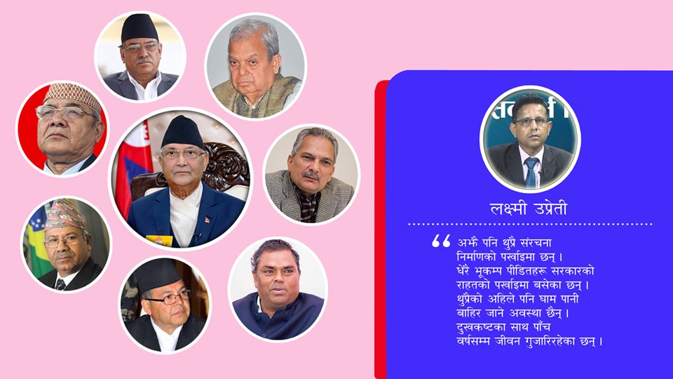 यस्तो वेलामा यो संकट र कष्टबाट देशलाई माथि उठाउनु पर्ने जनतालाई राहत दिनुपर्नेमा अहिले यो देशको राष्ट्रिय राजनीति हेर्दा लाग्छ ‘काम कुरो एकातिर कुम्लो बोकी ठिमीतिर’ भन्ने पुरानो उखान चरितार्थ बनेको छ । देशको पछिल्ला केही राजनीतिक घटनाक्रमले पनि यसलाई पुष्टि गरेको छ । चाहे सत्ताको बागडोर सम्हालेका सत्तासीन दल होस वा आफुलाई लोकतान्त्रिक पार्टी भन्न रुचाउने प्रमुख प्रतिपक्ष दल नै किन नहोस जनताप्रति उत्तरदायि कोहि पनि बन्न सकेनन् यो विपद् र संकटका बखत ।