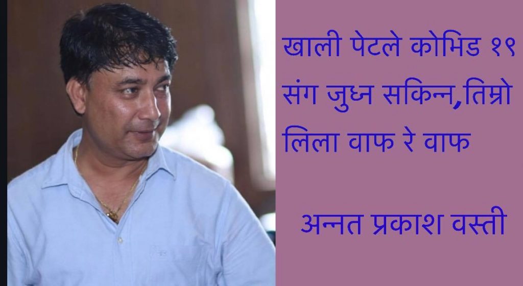 अव विस्तारै कार्यालयको समय हुँदै थियो । साथीहरुले मोवाइलबाट सम्पर्क गर्न थाले । सर मोटरसाइकल चलाउन नपाइने रे ? कसरी कार्यालय आउनु । फेरी सुरक्षाकर्मीहरुले पास खौज्दै हुनुहुन्छ – के गर्ने भनेर । यता लकडाउनलाई प्रभावकारी वनाउन खोज्दा यो नयाँ आपत आएछ भन्ने सम्झिदै कार्यालय आए । उपस्थिति जनाएर के कार्य कक्षमा पसेको थिए – आपतकालिन राहतका लागि भनेर एकै चोटी १९ जना नगरवासी कार्यकक्षमा पस्नु भयो । अव कताको लकडाउन, कताको सामाजिक दुरी । मनमनै सम्झे खाली पेटले कोभिड १९ सँग जुध्न सक्दैन । जसो तसो प्रकृया मिलाएर आपतकालिन राहतको व्यवस्था त भयो तर मनमा एउटा ठूलो आँधी शुरु भयो, कतै कोभिड १९ ले भन्दा पहिला भोकमरीले त हामीलाई लादैन । द्विविधामा पु¥याउने कोभिड १९ । वाफ रे वाफ ।