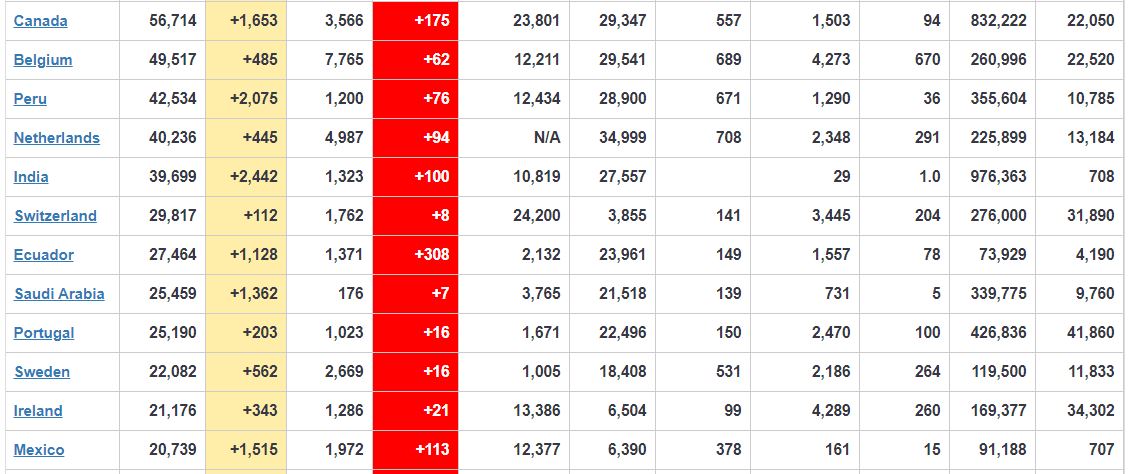 काठमाडौं, २१ बैशाख । कोरोना भाइरसका कारण भारतमा पस एक हजार तीन सय २३ जनाको मृत्यु भइसकेको छ । भारतमा मात्र पछिल्लो २४ घण्टा भित्र १ सय जनाको मृत्यु भएको वाल्डोमिटरमा उल्लेख गरिएको छ । भारतमा कोरोना सङ्क्रमित संख्या ३९ हजार छ सय ९९ जना पुगेको छ ।
