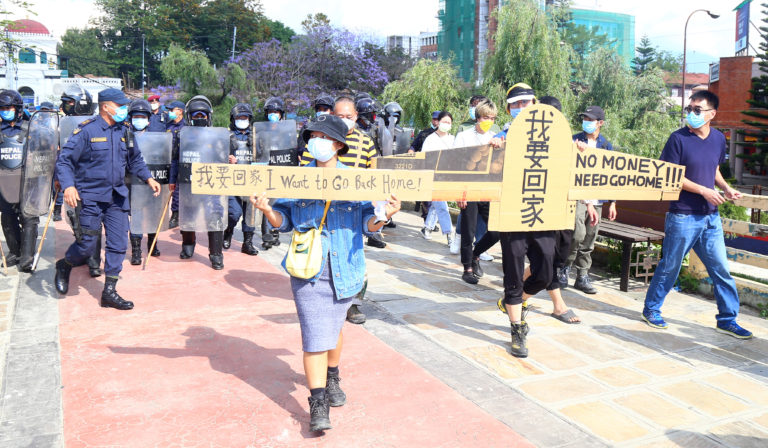 काठमाडौँ, २६ वैसाख । स्वदेश फर्कन पाउनु पर्ने माग गरी सिंहदरबार अघि धर्ना दिन गएका चिनियाँ नागरिक र प्रहरीबीच आज झडप भएको छ ।