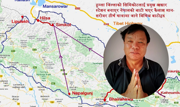 ३. सिमिकोट बाट हिल्साको बाटो २ लेन को बनाउन प्रस्तावित गर्नु पर्ने मुख्य कारण के छ भने भारतले लिपू पास सम्म नै मोटरको बाटो लगे तापनि मोटर बाट ओर्लेर तिब्बतको सिमाना सम्म पुग्न र मोटर चढ्नको लागि कठिन बाटो बाट एक दिन हिड्नु पर्ने हुन्छ. अहिले भारत बाट जाँदा ५ दिन हिड्नु पर्छ. तर सिमिकोट बाट हिल्सा हुँदै मानसरोबर पुग्न हिड्नु पदैन. त्यसैले तीर्थ यात्रीहरुको लागि धेरै सजिलो छ.