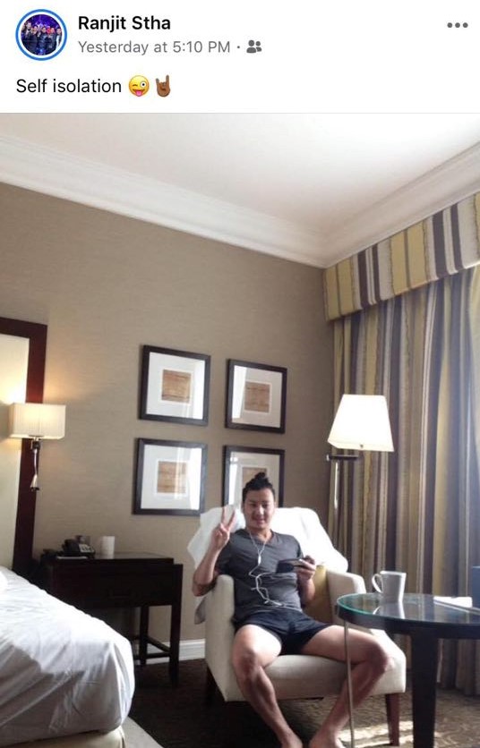 वैदेशिक रोजगारीको सिलसिलामा दुबईमा रहेका रञ्जितले भनेका छन्, ‘मलाई कोरोनाको पोजेटिभ छ । हाल सेल्फ आइसोलेसनमा रहेको तर खासै त्यस्तो केही जस्तो त भएको छ्र्रैन । तातोपानी खान्छु व्यालेन्स डाइटमा बसिरहेको छु ।’