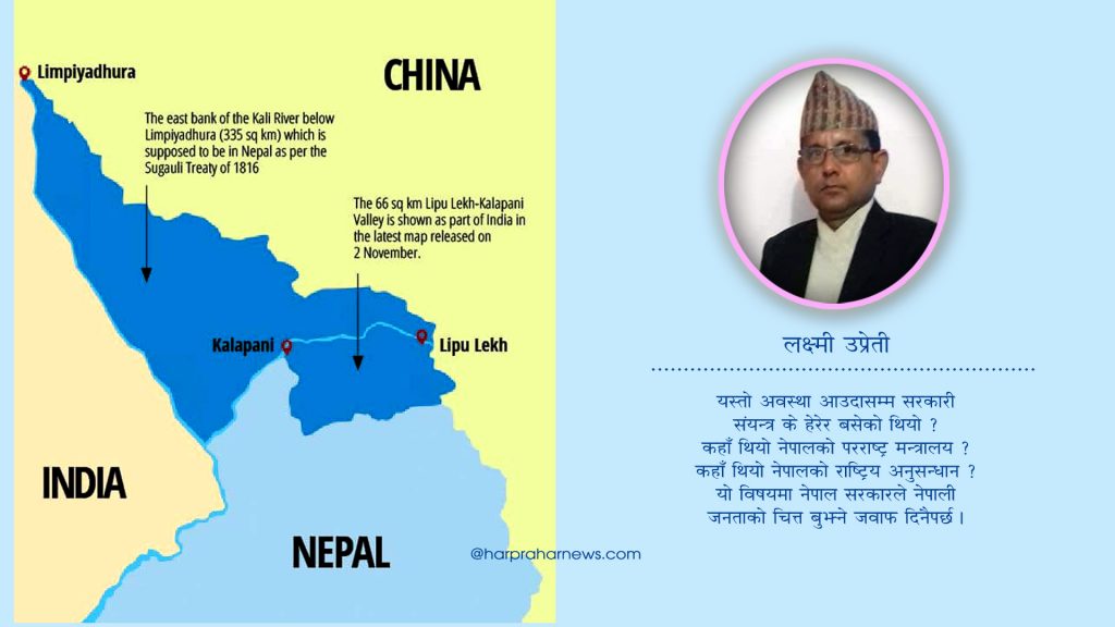 भारतमा छापिएका अधिकांश नक्साहरूमा रणनीतिक महत्वको क्षेत्रका रूपमा रहेको नेपालको सिमानाभित्र पर्ने दार्चुला जिल्ला व्यास गाउपालिका —१ को उत्तर पश्चिममा रहेको लिपुलेक, कालापानी, लिपियाधुरा क्षेत्र नक्साबाट काटेर पहिलेदेखि नै भारततर्फ मिलाइएको र त्यस्ता नक्सा हेर्दा नेपालको ३७२ वर्ग किमि भूमि अतिक्रमणमा परिसकेको भन्दैं नेपालका सीमाविज्ञहरु उहिल्यैदेखि कराइरेका छन् । उनीहरु भारतमा छापिएर नेपालको बजारमा बिक्री वितरण गरिएका अधिकांश नक्सामा नेपालको सिमाना पहिलेदेखि नै शुद्ध र क्षेत्रफल पूर्ण भएको पाइँदैन भनेर कराए । तर, यस विषयमा वर्तमान ओली नेतृत्वको सरकारमात्र होइन यसअघिका सरकारले त्यस कुरामा ध्यान पुर्याउनु पर्छ कि पदैंन । त्यसमा किन ध्यान नपुगेको हो । पटक पटक सत्तामा बसेका सरकारले नेपाली जनताको चित्त बुझ्ने गरी जवाफ दिनुपर्छ ।