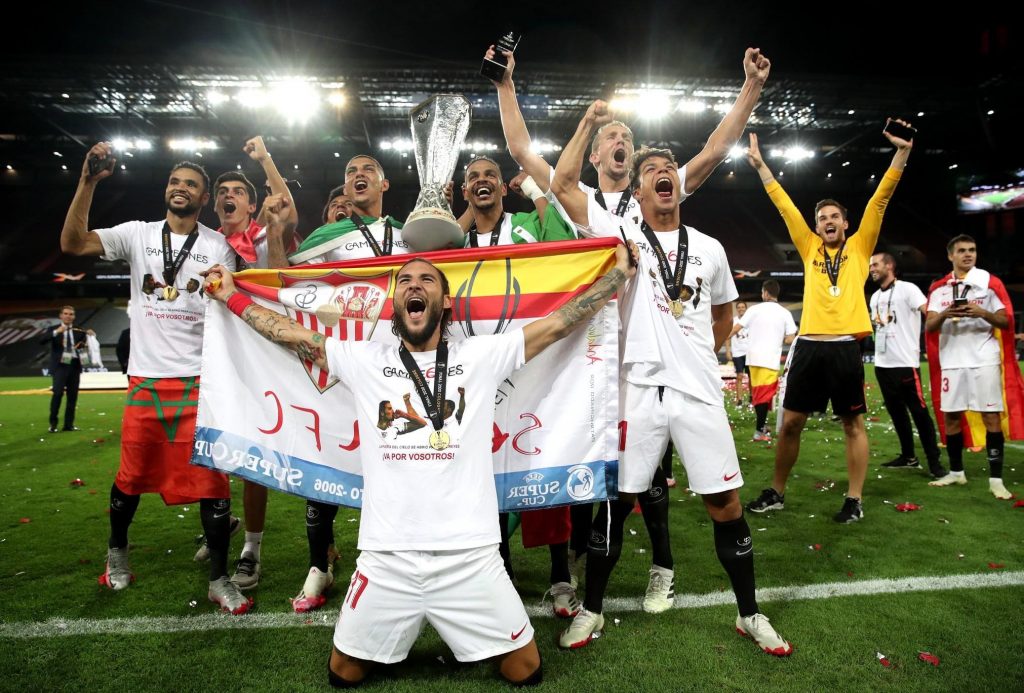 खेलको १२औं मिनेटमा जिसस नाभास र ३३औं मिनेटमा इभर बानेगाको हेडिङलाई गोलमा परिणत गर्दै सेभिल्लाका लागि लुक डी जोङले गोल गर्दै सेभिल्लालाई २–१ को अग्रता दिलाएका थिए । त्यसको २ मिनेटमै ३५औं मिनेटमा इन्टर मिलानका डिएगो गोडिनले खेललाई २–२ मा पुऱ्याए ।