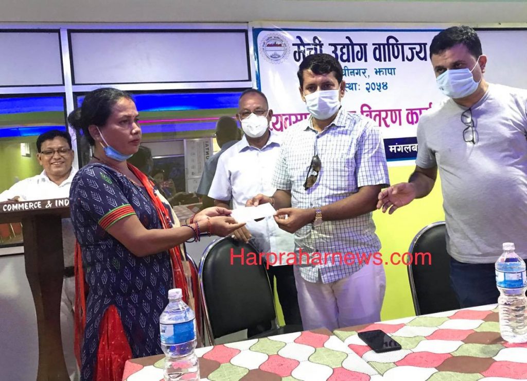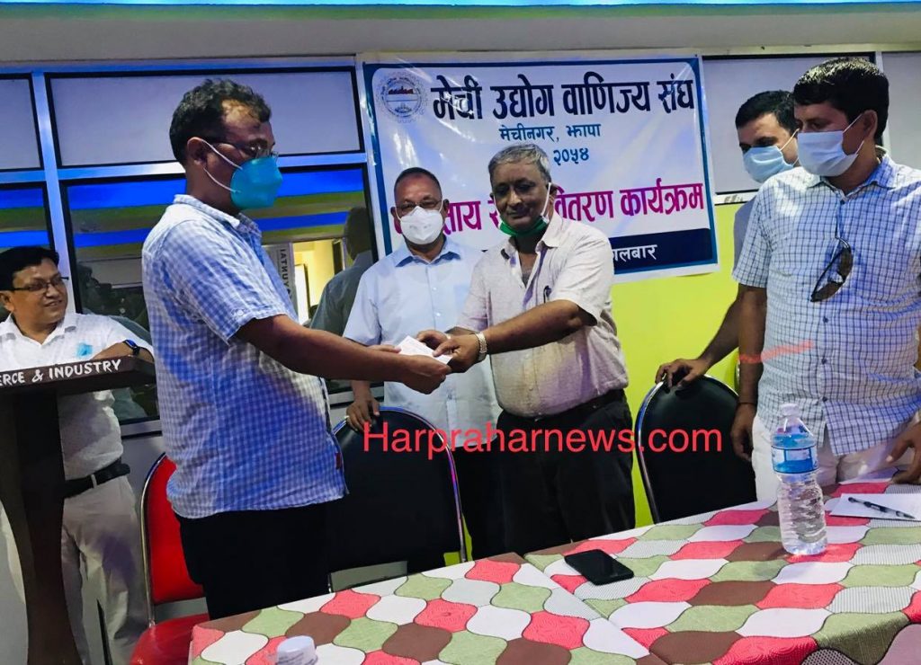 मेचीनगर ,९ भदौ । मेचीनगरका उद्योगी व्यवसायीहरुको छाता संस्था मेची उद्योग बाणिज्य संघले चार जना व्यवसायीलाई राहत वितरण गरेको छ ।