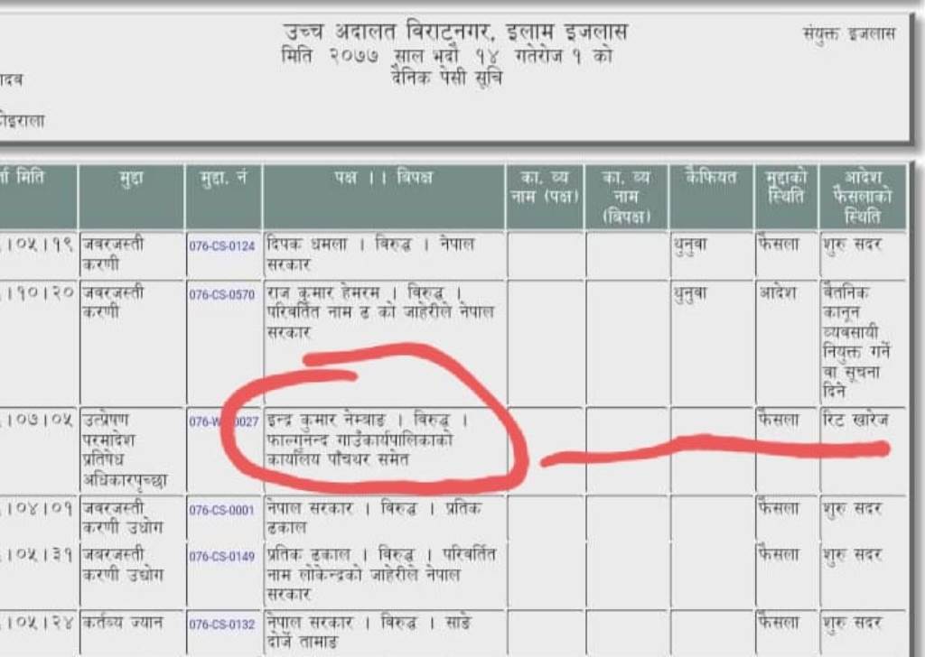नेपाल कम्युनिष्ट पार्टी फाल्गुनन्द गाउँपालिकाका सचिव फाल्गुनन्द गाउँपालिका–४ का इन्द्रकुमार नेम्वाङले मातृभाषा शिक्षक नियुक्ती प्रक्रियाविरुद्ध गत ७ कात्तिकमा उच्च अदालत विराटनगरमा रिट दायर गरेका थिए ।