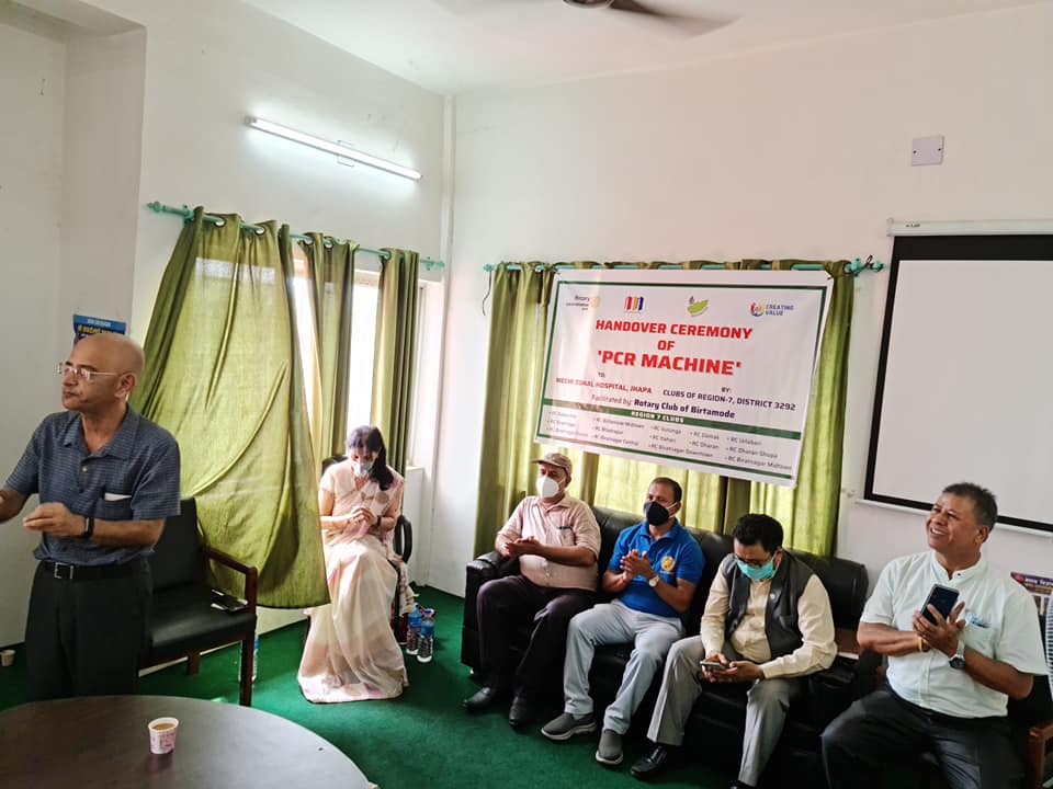 रोटरी बिर्तामोड अफ बिर्तामोडको समन्वयमा रोटरीको क्लव अफ रिजन ७ तथा डिस्ट्रिक्ट ३२९२ को सहयोगमा रोटरी बिर्तामोड मिडटाउन, रोटरी भद्रपुर, रोटरी काँकरभिट्टा, रोटरी सुरुङ्गा र रोटरी दमकले बिहीबार मेची प्रादेशिक अस्पतालमै पुगेर संयुक्त रुपमा पीसीआर मेशिन प्रदान गरेका हुन् ।