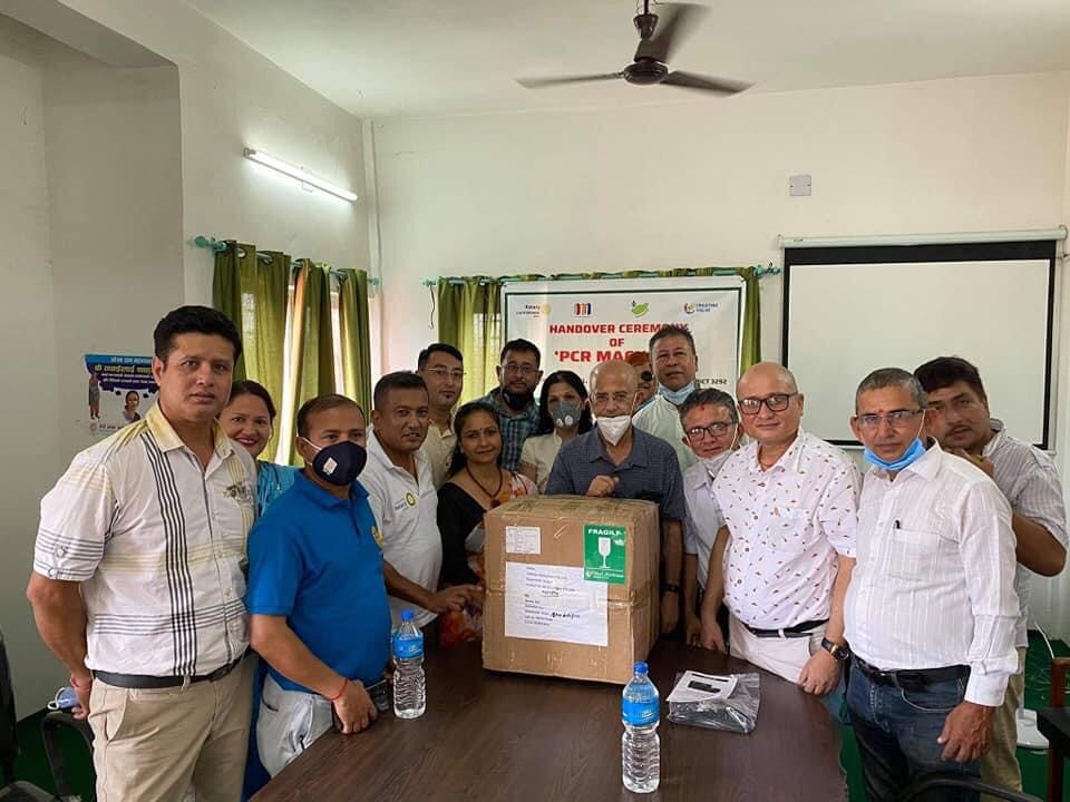 विश्वव्यापी महामारी नोवल कोरोना भाइरस (कोभिड १९) को संक्रमण नेपालमा बढ्दै गइरहेको बेला परीक्षणको दायरा बढाउन सहयोग पुर्याउने उद्देश्यले रोटरीले देशभरि ७ वटा पीसीआर मेशिन प्रदान गर्ने निर्णय गरेअनुसार प्रदेश १ मा मेची अस्पताललाई एउटा मेशिन उपलब्ध गराइएको रोटरियन निर्मल भट्टराईले जानकारी दिए । मेशिनको मूल्य सरदर १३ लाख ५० हजार रुपैयाँ रहेको रोटरी क्लव अफ भद्रपुरका अध्यक्ष आदित्य पराजुलीले बताए ।