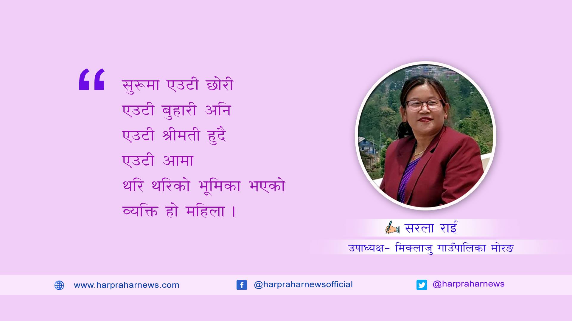 लेखक सरला राई मिक्लाजुङ गाउँपालिका मोरङका उपाध्यक्ष हुनुहुन्छ ।
