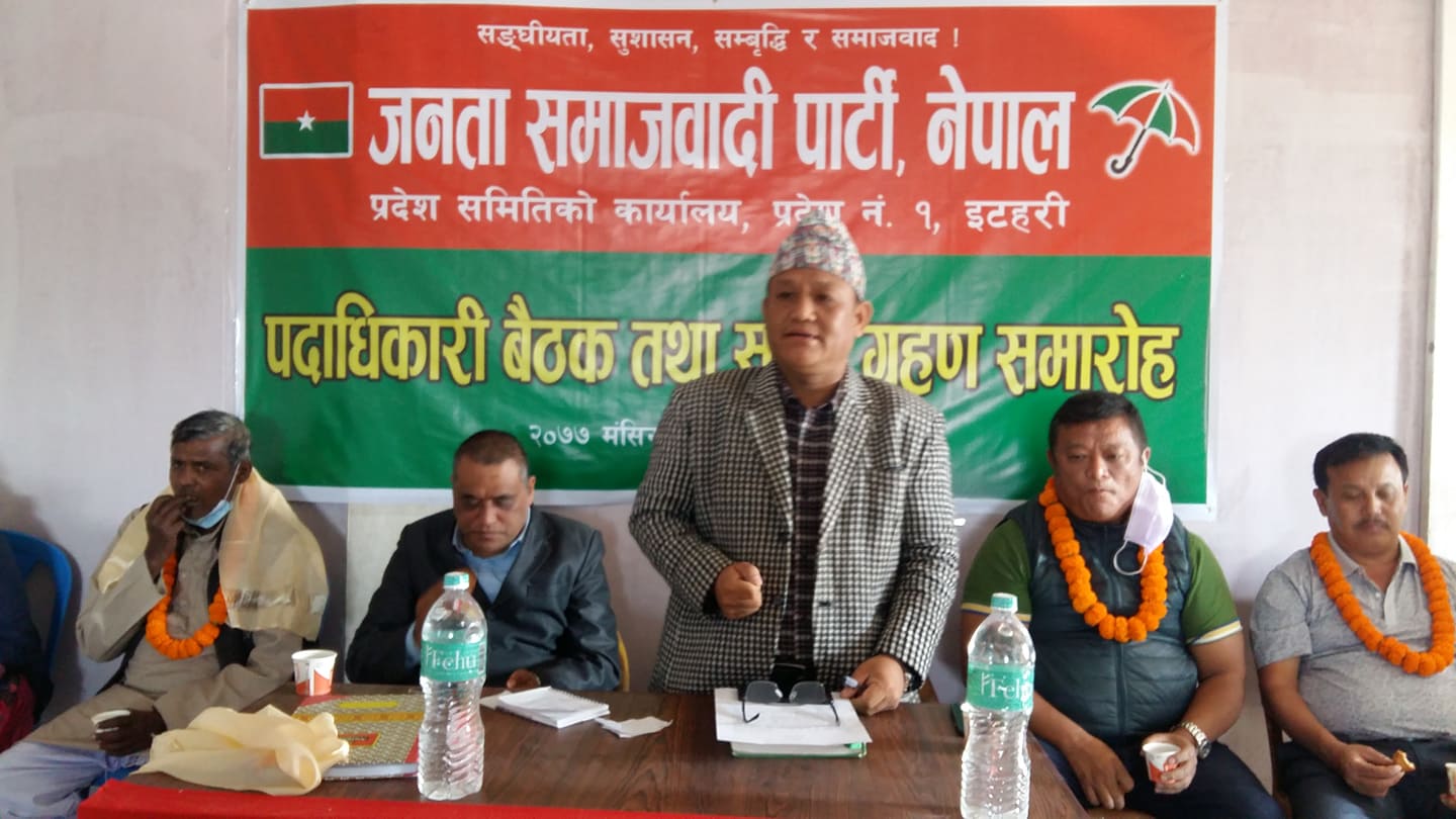 इटहरी, १४ मंसिर । जनता समाजवादी पार्टी प्रदेश १ का मनोनित सदस्यहरु र विभिन्न निकायका प्रमुखहरुलाई आइतबार सपथ गराइएको छ । प्रदेश पार्टीको कार्यकारिणी बैठकको अवसर पारेर सपथ ग्रहण समारोह आयोजना गरिएको अध्यक्ष प्रवीण चाम्लिङले जानकारी दिए ।