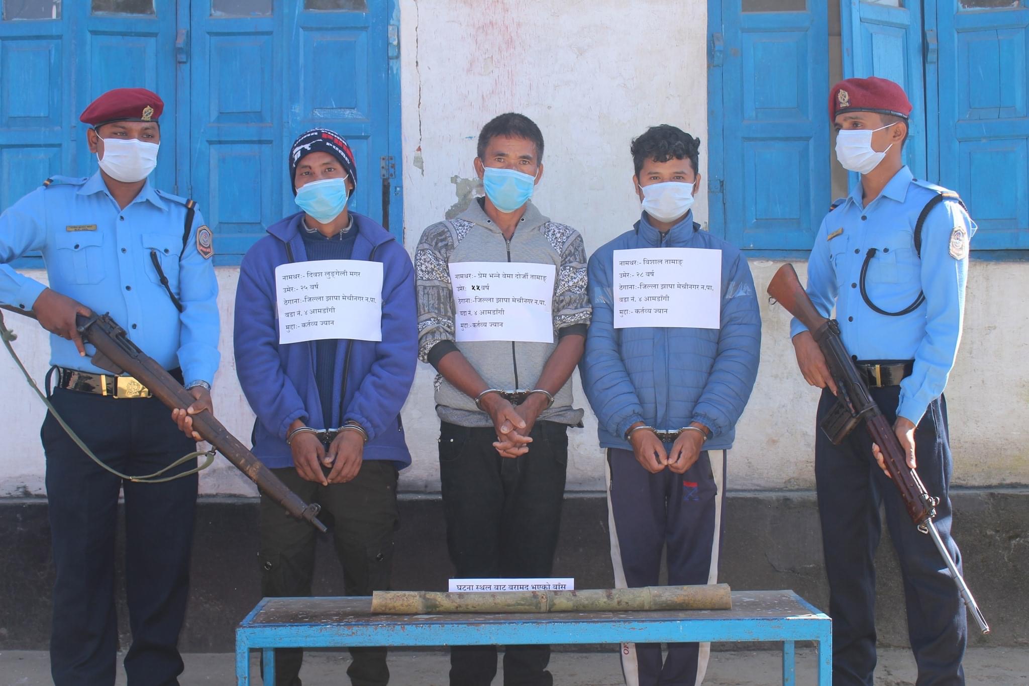 घटनाको जानकारी पाए लगत्तै ईलाका प्रहरी कार्यालय काकडभिट्टाबाट खटिएको प्रहरी टोलीले घटनामा संग्लग्न रहेका तिनै जनालाई पक्राउ गरी थप अनुसन्धान भईरहेको उक्त कार्यायले जनाएको छ ।