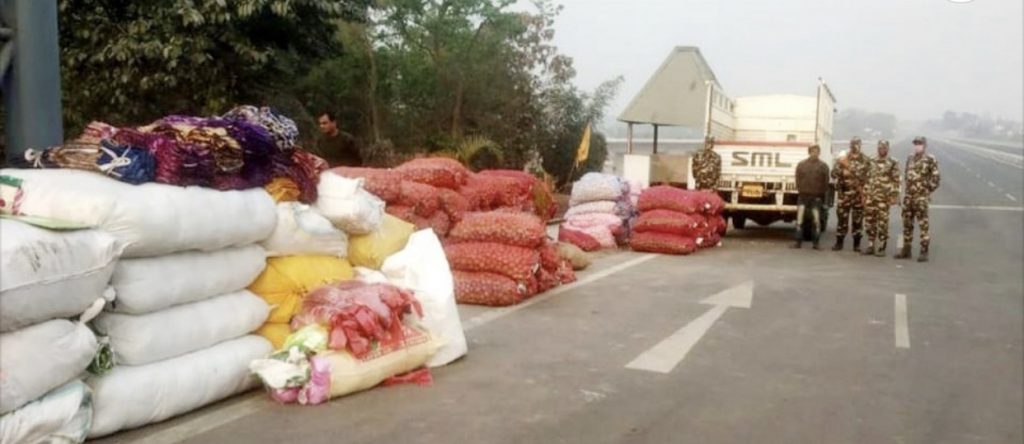 सीमा नाकामा तैनाथ एसएसबीका ४१ बटालियन गौरसिंह बस्तीबाट खटिएको टोलीले भारतीय नम्बर प्लेटको मिनी ट्रकमा लोड गरिएका आलु र सब्जीका बोरा निकालेर हेर्दा त्यसभित्रबाट लत्ता कपडा बरामद गरेको बताइएको छ ।