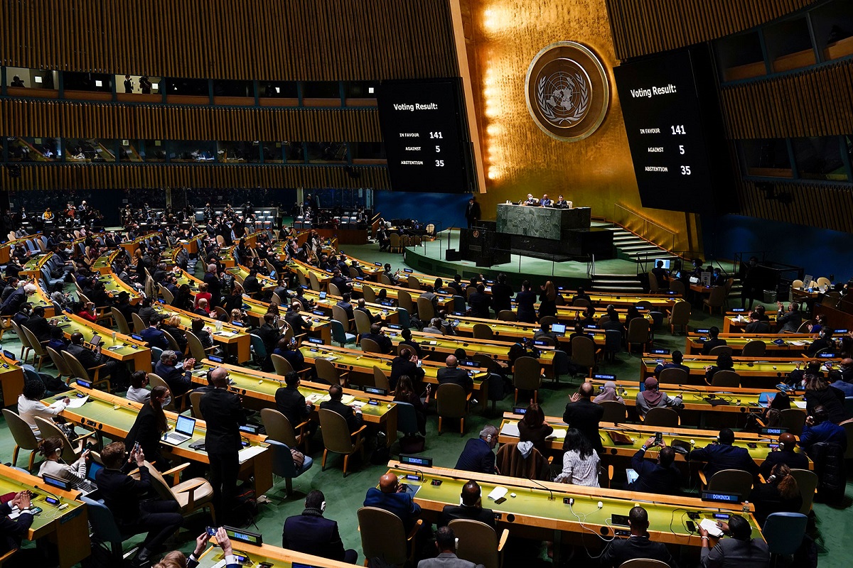 रूसका पक्षमा भने उत्तर कोरिया, सिरिया, बेलारूस र इरिट्रियाले मत दिएका बताइएको छ ।