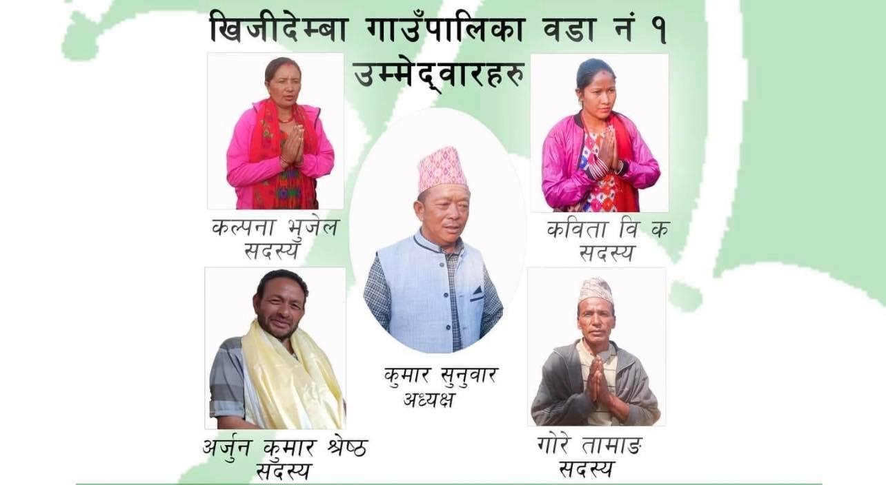 ओखलढुंगाको खिजिदिम्बा गाउँपालिका वडा नम्बर १ मा जनता समाजवादी पार्टी, नेपाल (जसपा)को प्यानल विजयी भएको छ ।