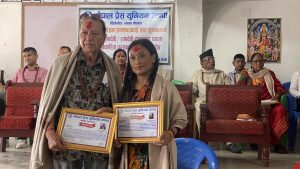 सम्मानित दुई पत्रकार गोविन्दचन्द्र क्षेत्री र जोश्ना श्रेष्ठ