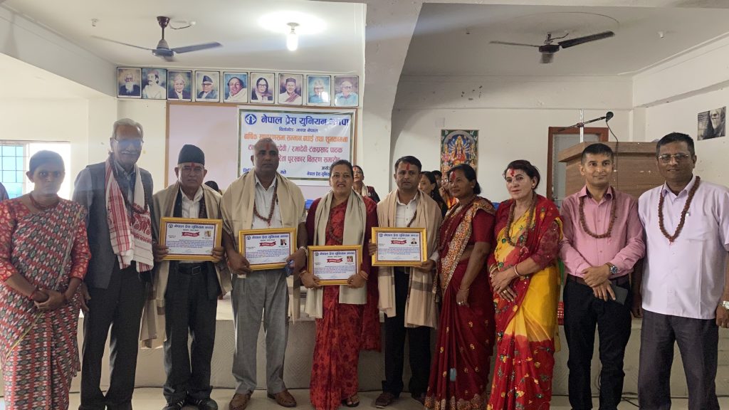 विर्तामोड । नेपाल प्रेस युनियन झापा शाखाको बार्षिक साधारण सभामा दुई पत्रकारसहित १२ जनालाई सम्मानसहित पुरस्कृत गरिएको छ ।
