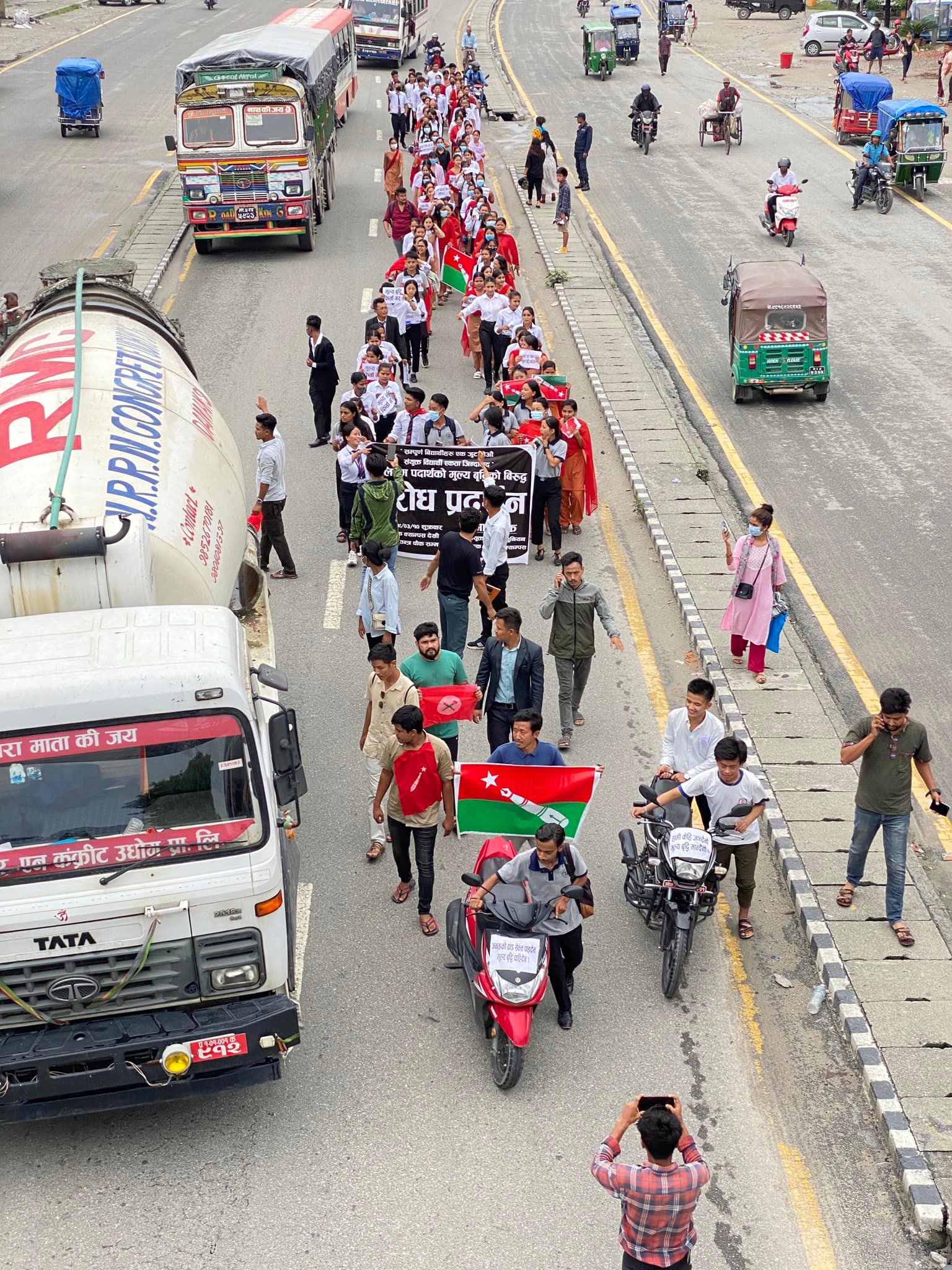 शुक्रबार सत्ता गठबन्धनमा आवबद्ध नेविसंघ र समाजवादी विद्यार्थी युनियनसहित चार वटा विद्यार्थी संगठनले पेट्रोलियम पदार्थमा गरिएको मूल्यवृद्धिको विरोध गरेका हुन् ।