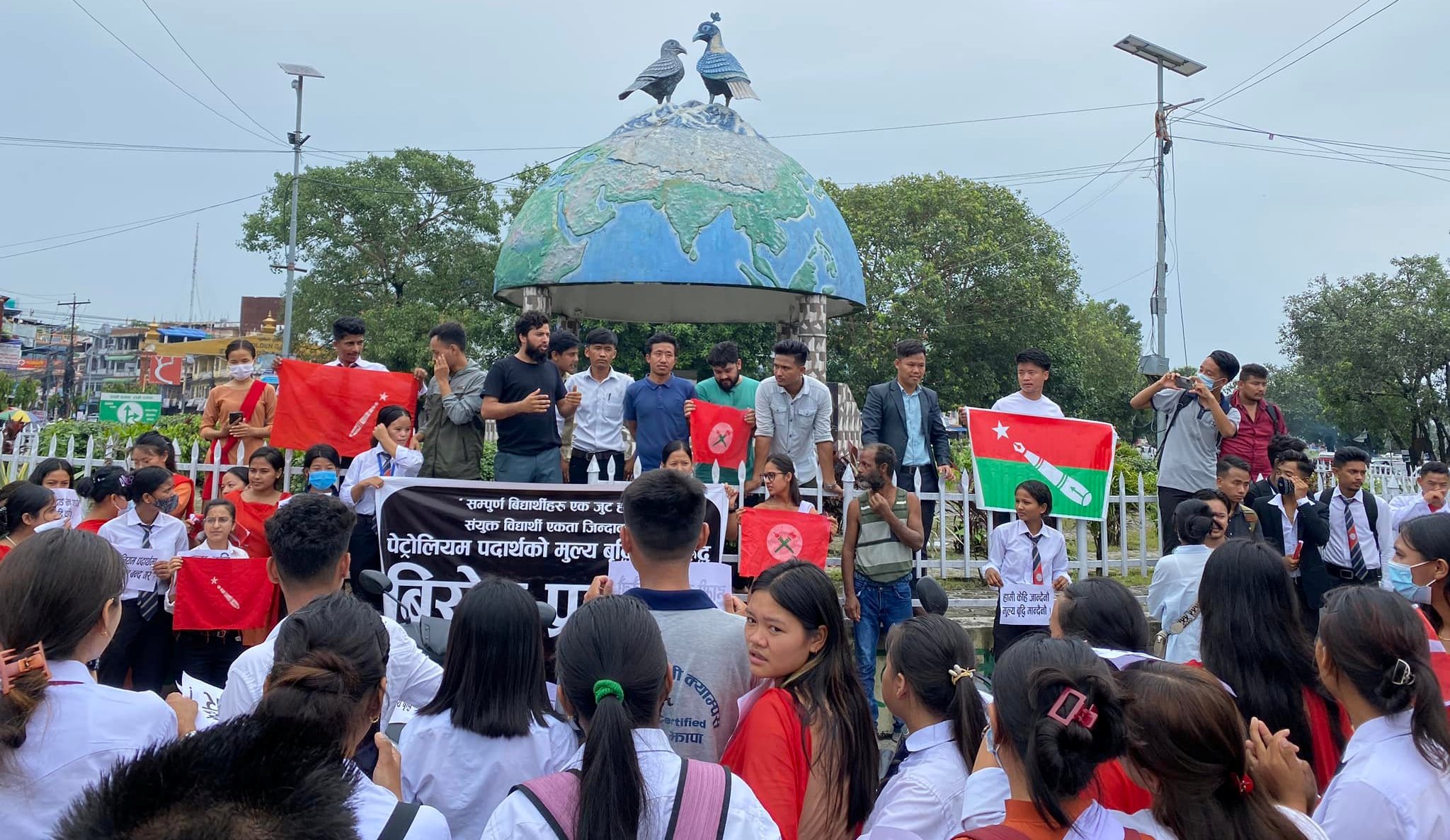 मुलुकमा दिनानुदिन पेट्रोलियम पदार्थमा भइरहेको मूल्यवृृद्धिको विरोध गर्दै दमकका विद्यार्थीले विरोध प्रदर्शन गरेका छन् ।