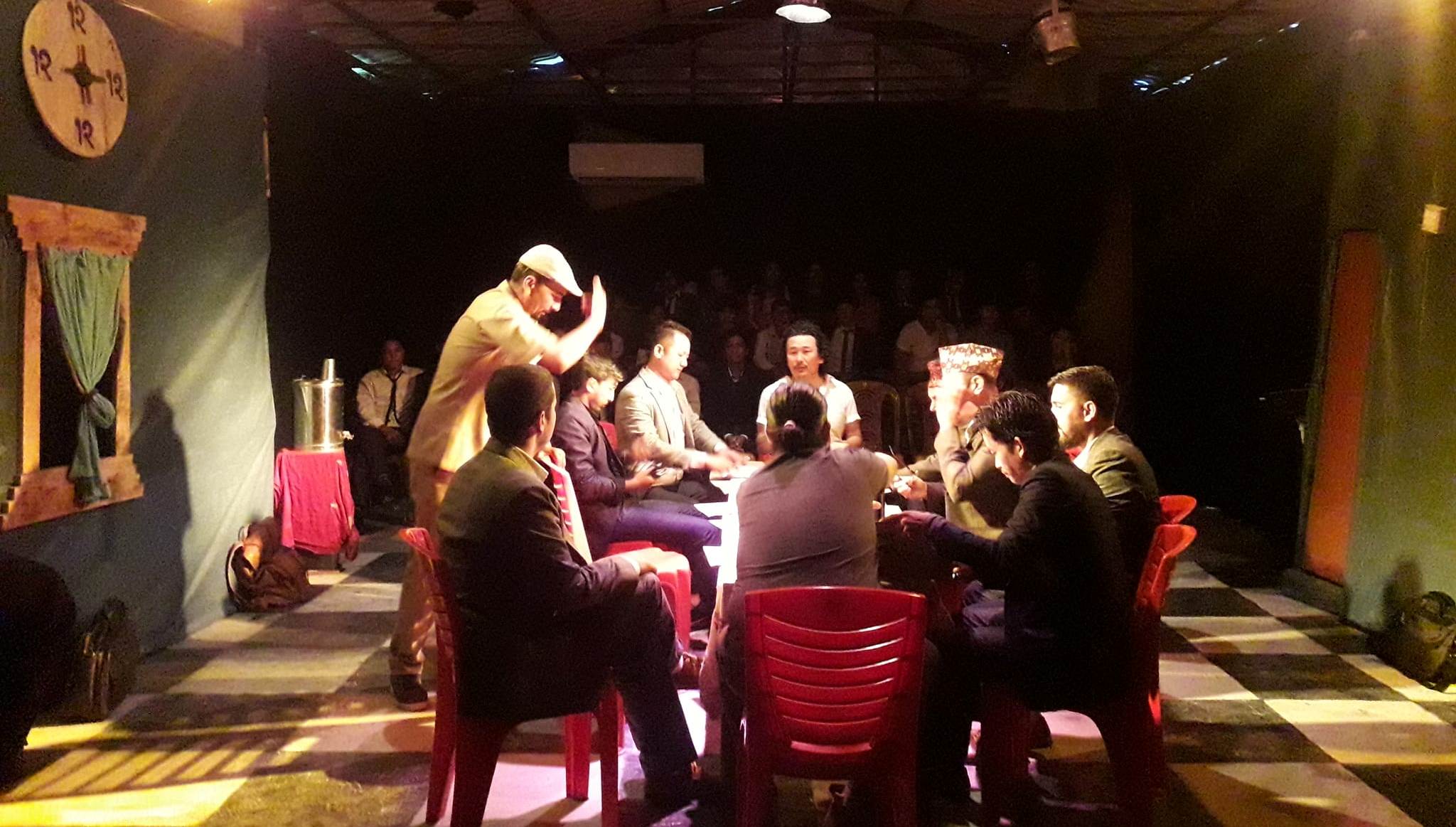 मञ्च बीचमा रहेछ । अहिलेसम्म नदेखेको हलको डिजाइनले अझ हैरान बनायो । बीचमा एउटा टेबल र बाह्र वटा कुर्सी बाहेक केहि छैन । कलाकार बाह्र जना नामैले थाहा भैहाल्यो । तिनले कुर्सीमा बसेर के अभिनय गर्लान्, कसरी दर्शकलाई बाँध्लान् ? मनमा औडाहा हुनथाल्यो । नाटकको सुरुवातै रेकर्डेड आवाजबाट हुन्छ जसले खासै ध्यान खिच्दैन । पहिलो गासमै ढुंगा !