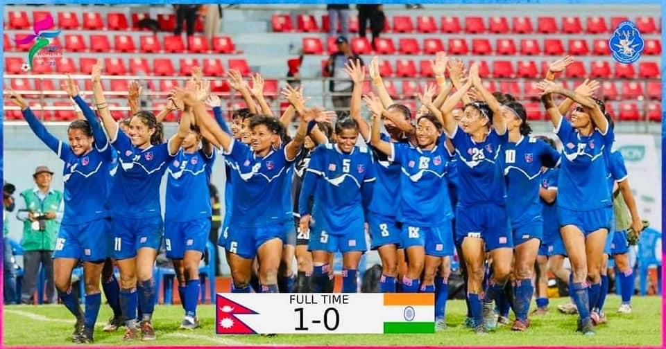 झापा,३१भदौ ।नेपाल साफ महिला च्याम्पियनसिपको फाइनलमा प्रवेश गरेको छ। पाँच पटकको च्याम्पियन भारतलाई १-० गोलले पराजित गर्दै नेपाल फाइनलमा पुगेको हो।