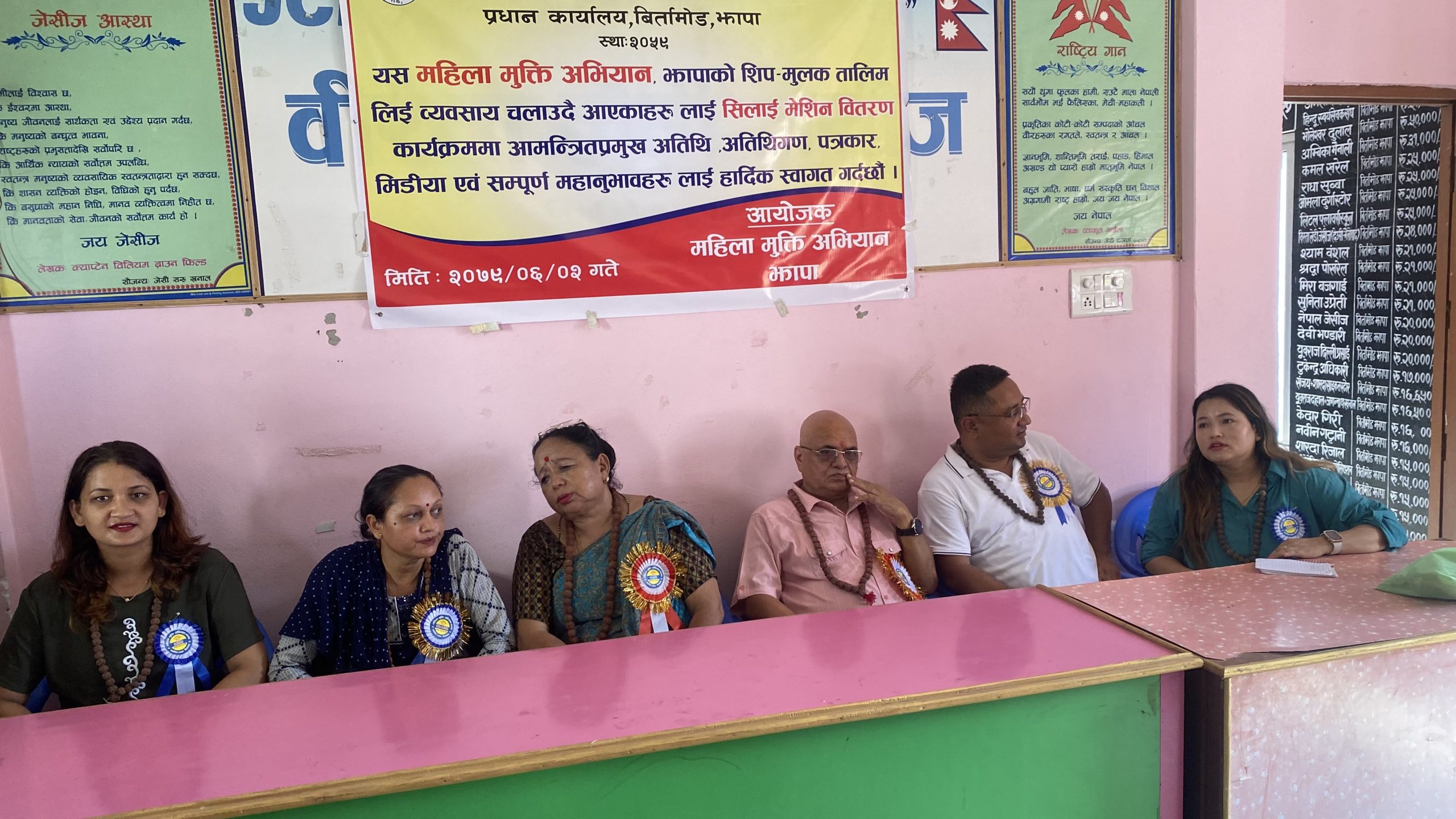 महिला मुक्ति अभियान झापाकी अध्यक्ष राधा सुव्वाको अध्यक्षता तथा बिर्तामोड उद्योग वाणिज्य संघका पूर्व अध्यक्ष मोहन ढकालको प्रमुख आतिथ्यमा भएको कार्यक्रममा संस्थाकी सचिव पूर्णवति लिम्वूले स्वागत गरेकी थिइन् ।