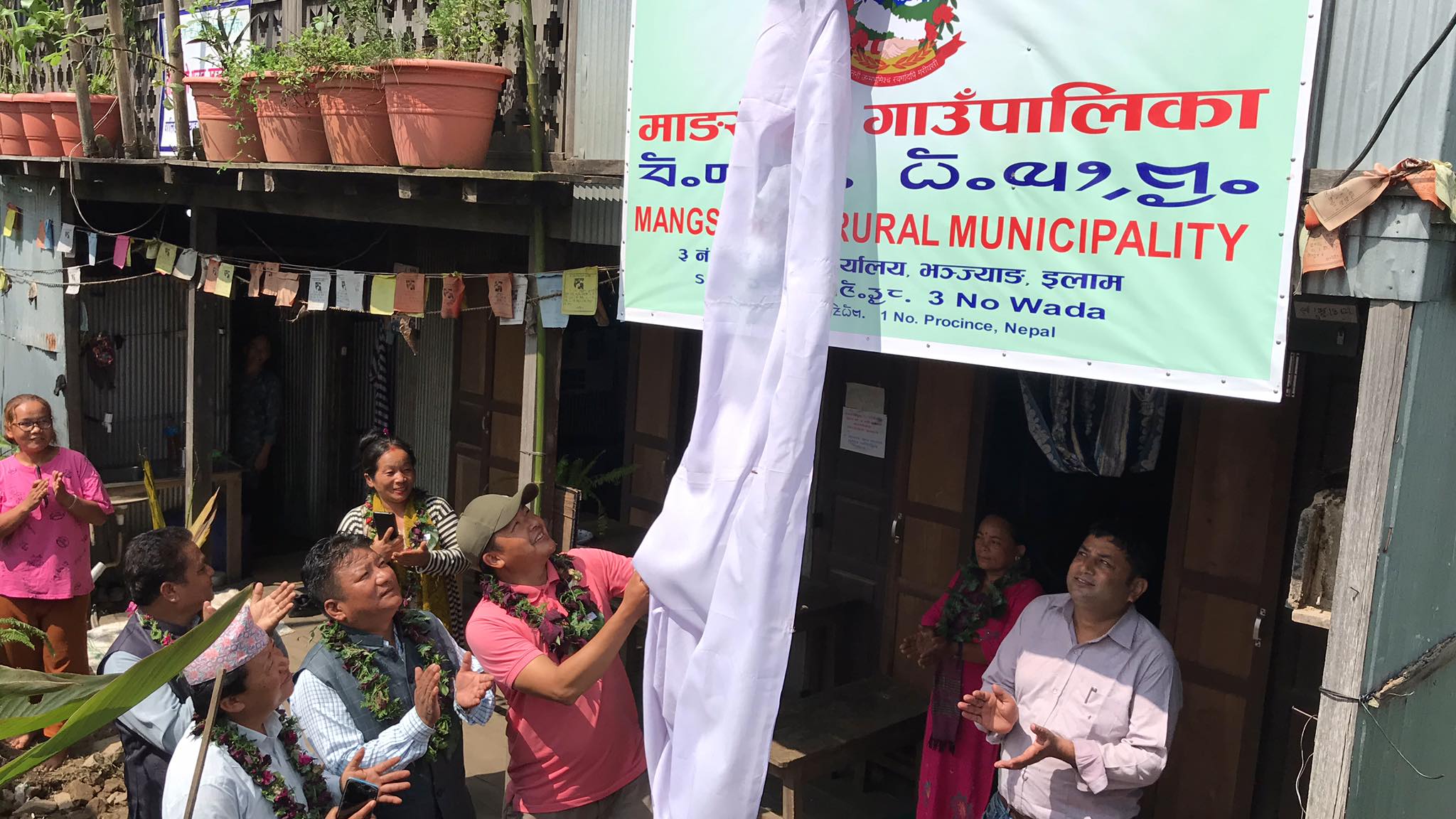 आज आईतबार एक औपचारिक कार्यक्रमबीच माङसेबुङ गाउँपालिकाका उपाध्यक्ष विनोद कुमार नेम्बाङले व्यानरमा राखिएको पर्दा खोलेर उद्घाटन गरेका थिए ।