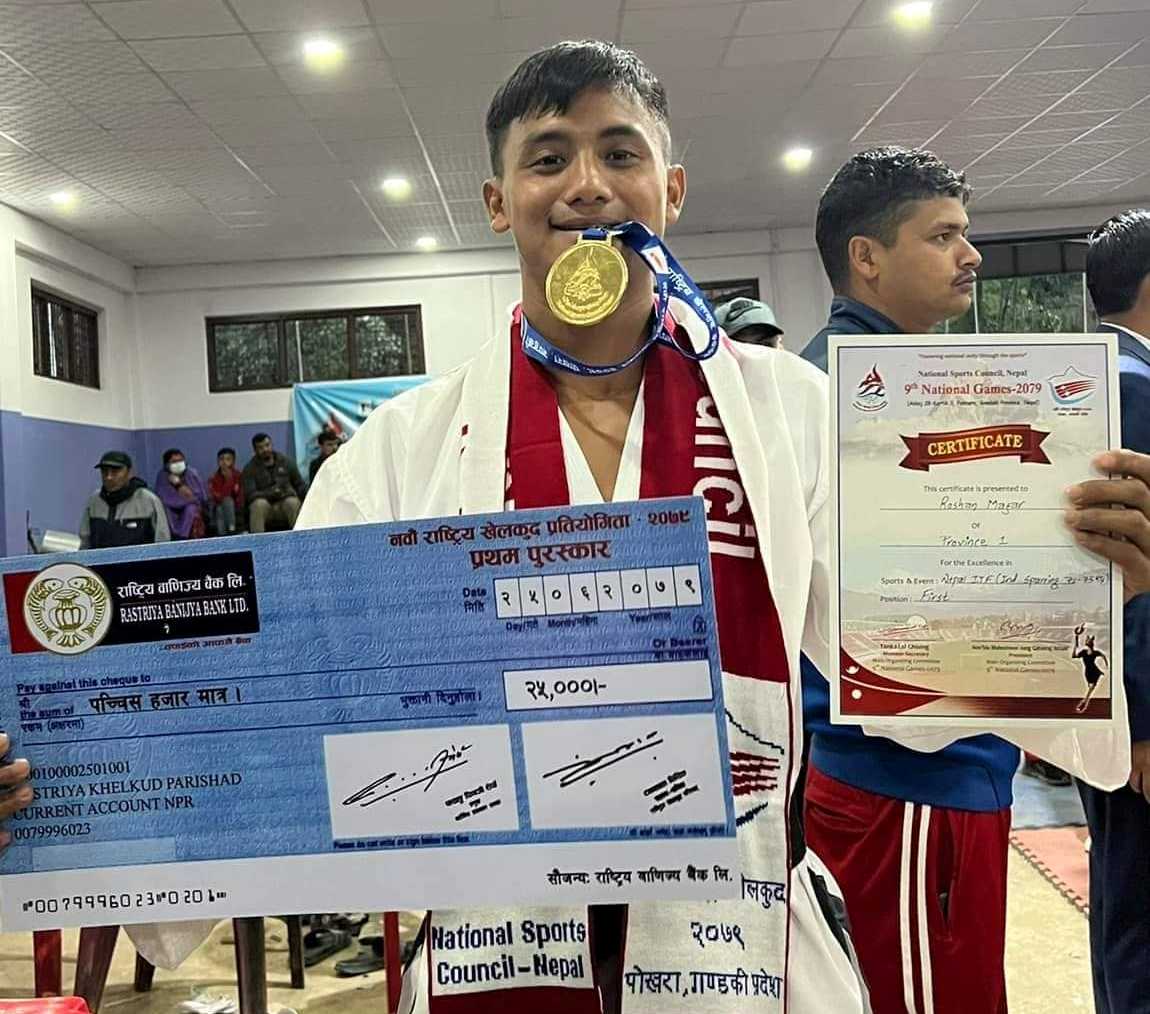 प्रदेश नम्बर १ बाट आइटीएफ तेक्वान्दाको विभागीय टोलीहरु नेपाली सेना, नेपाल प्रहरी र सशस्त्र प्रहरीका सहित ७ प्रदेशबाट आइटीएफ तेक्वान्दोको ७१–७५ केजी तौल समूहमा प्रतिस्पर्धा गरेका मगरले स्वर्ण जितेका हुन् ।