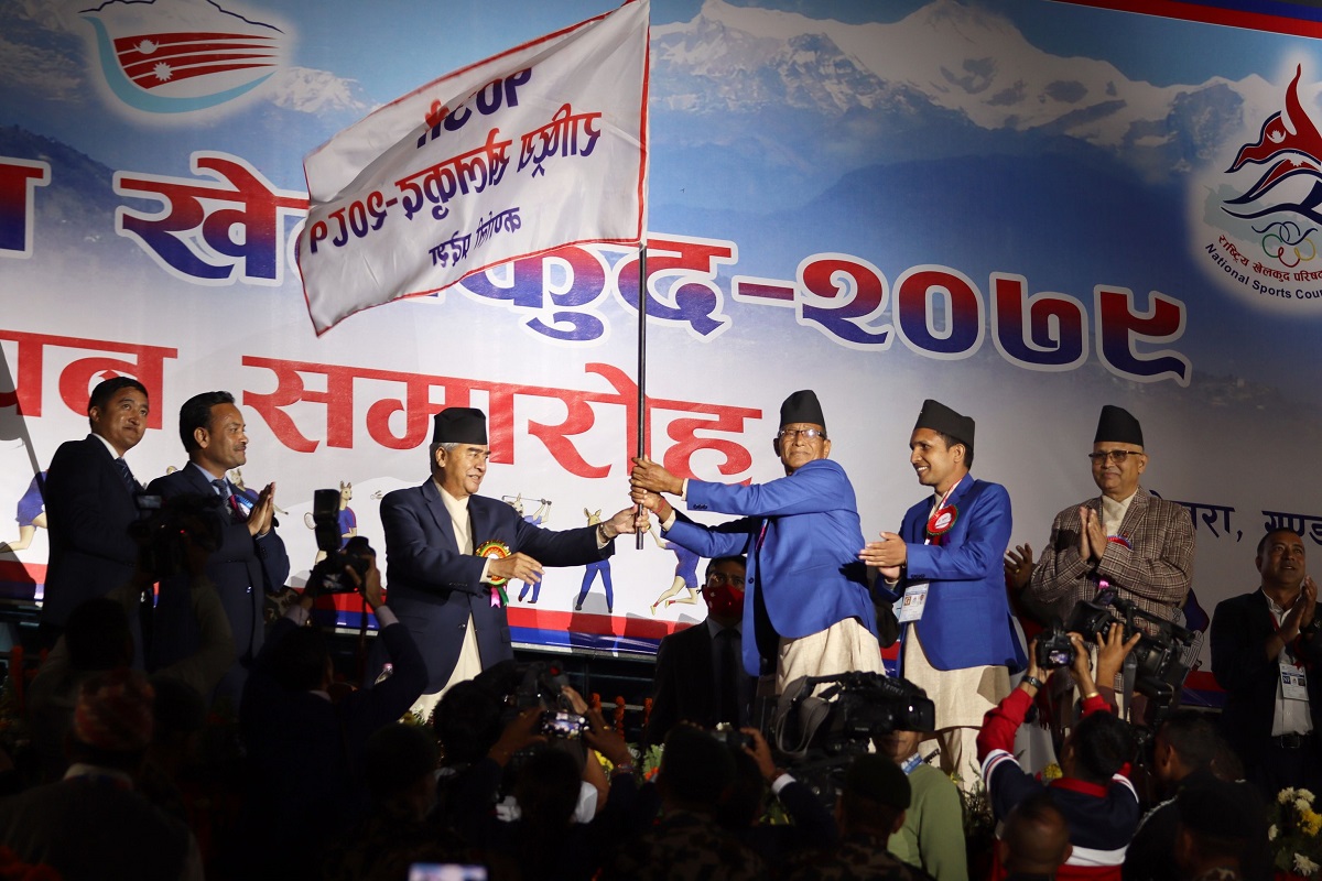 बिहीबार प्रधानमन्त्री शेरबहादुर देउवाको उपस्थितिमा भएको समापन समारोहमा कर्णाली प्रदेशमा २०८१ मा हुने १० औँ राष्ट्रिय खेलकुदको झन्डा हस्तान्तरण गरिएको छ ।