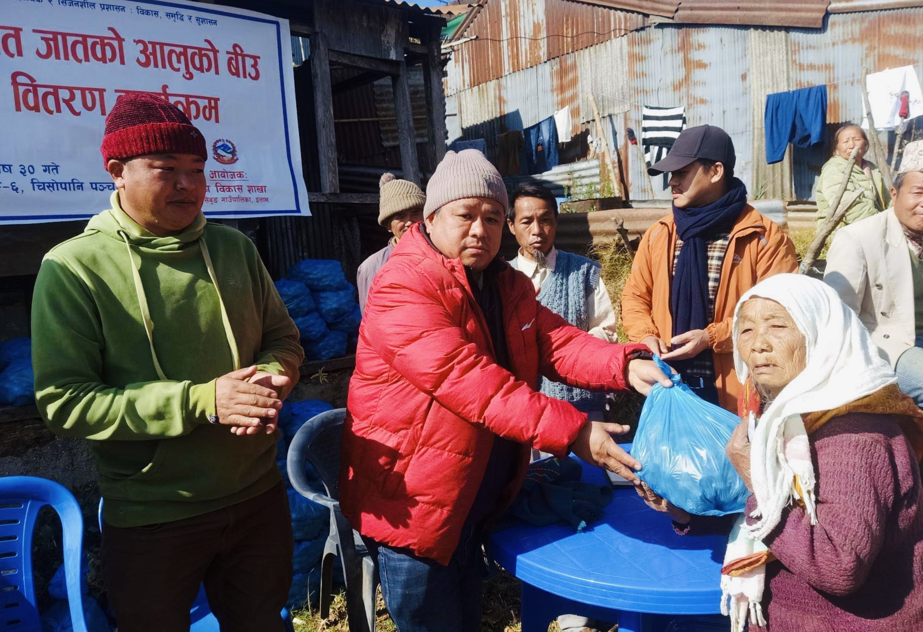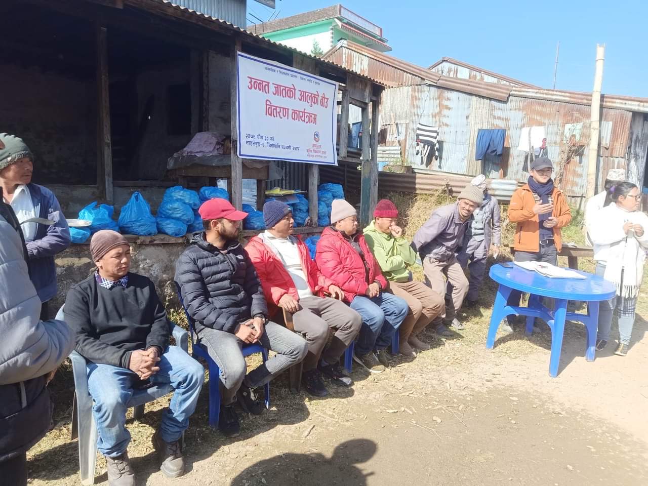 माङसेबुङ गाउँपालिका वडा नं. २ र ६ को माथिल्लो क्षेत्रका २ सय ३६ जना कृषकहरुलाई आलुको बीउ वितरण गरिएको कृषि विकासशाखा अधिकृत सुरज अधिकारीले बताए ।