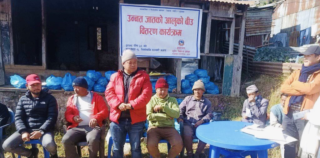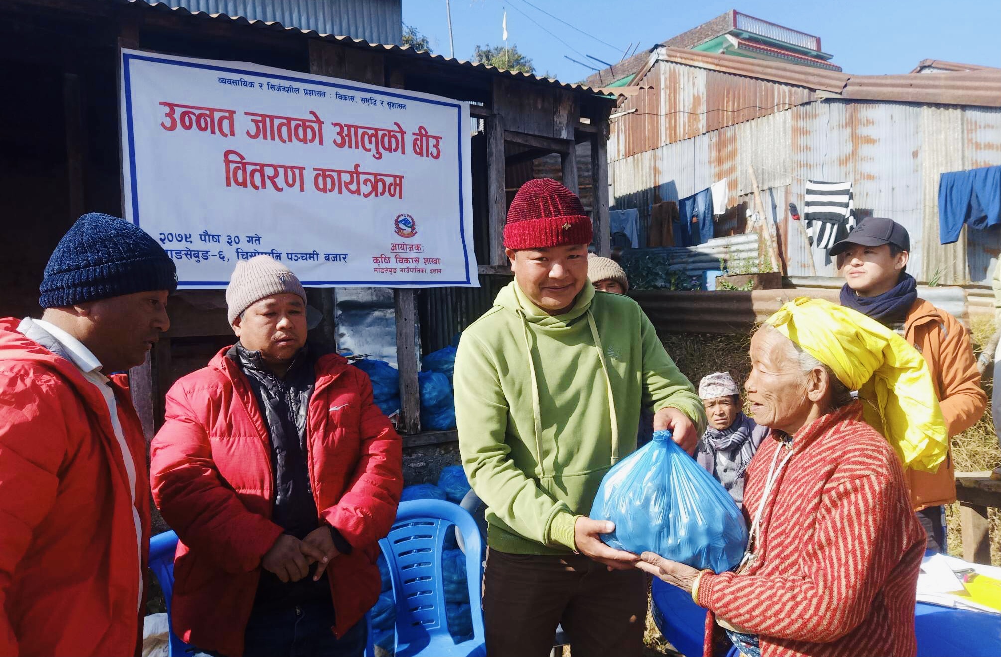 माङसेबुङ । माङसेबुङ गाउँपालिकाले कृषकहरुलाई खुमलसेतो जातको आलुको बीउ निशुल्क वितरण गरेको छ । माङसेबुङगाउँपालिका वडा नं. ६ पञ्चमी बजारमा कृषि विकास शाखा माङसेबुङको आयोजनामा शनिबार एक कार्यक्रम गरी कृषकहरुलाई उन्नतजातको आलुको बीउ वितरण गरेको हो ।
