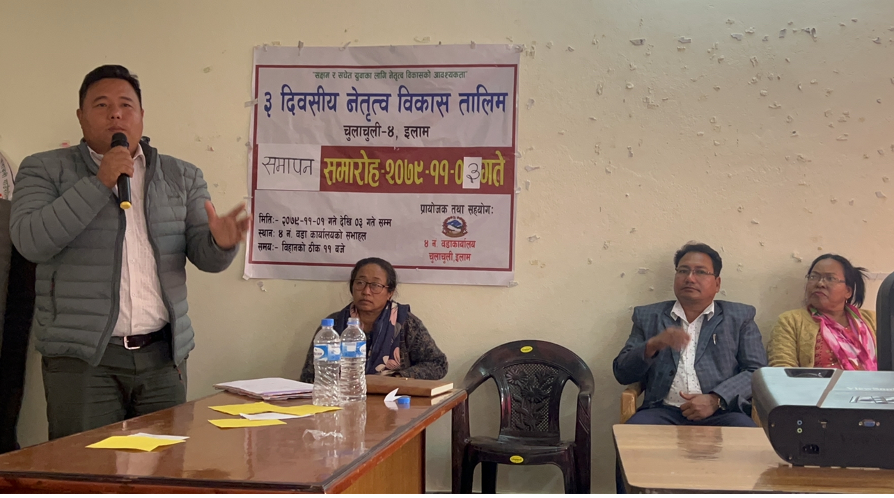 इलामको चुलाचुली ४ मा सञ्चालित ३ दिने आधारभूत नेतृत्व विकास तालिम बुधबार सम्पन्न भएको छ ।