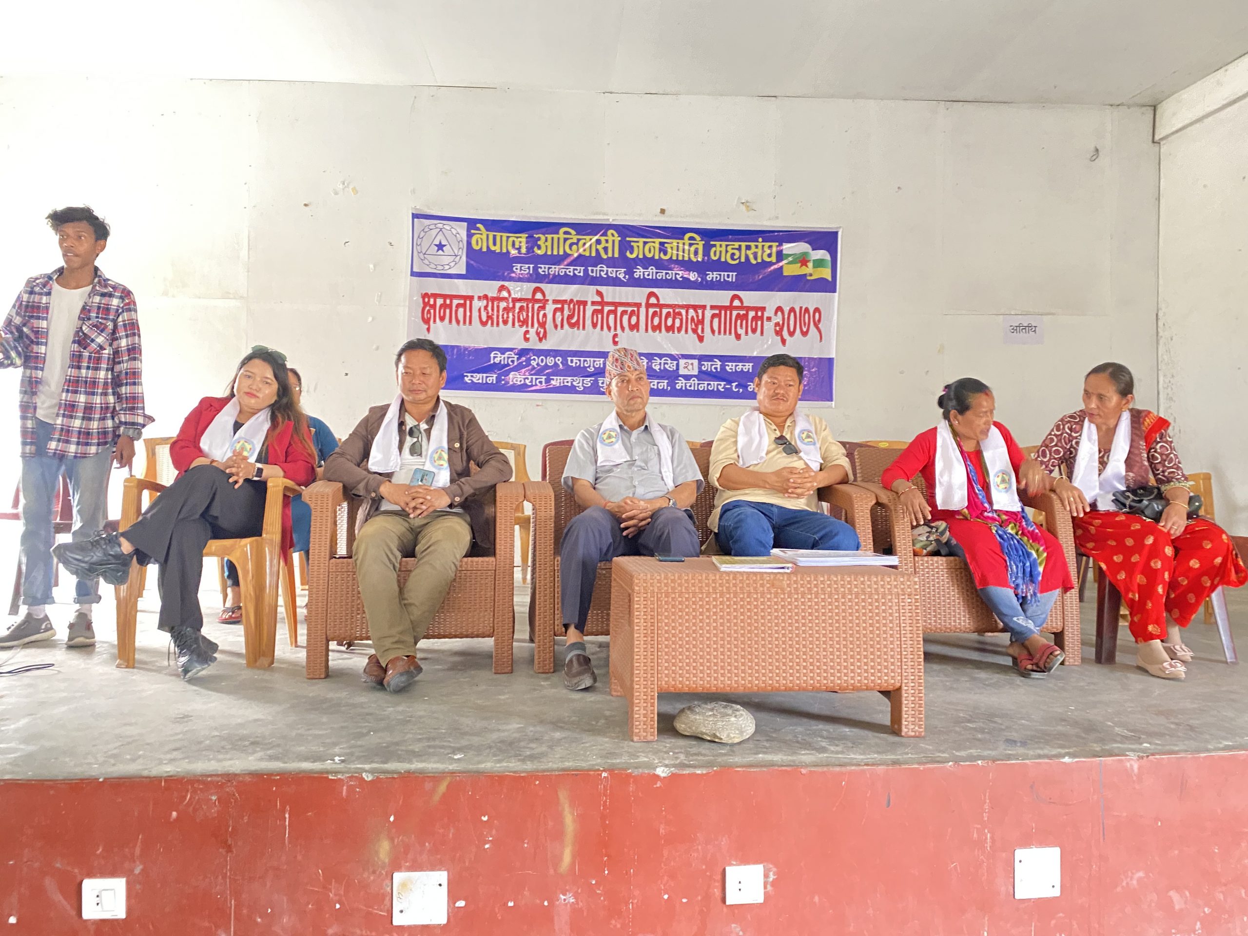 कार्यक्रममा आदिवासी जनजाति महासंघ मेचीनगरका अध्यक्ष ओम प्रकाश खापुड्ं,सहजकर्ता भूमिका लिम्बू फियाक,वडासदस्य रूपागुरूड्ं आदिले मन्तव्य राखेको थिए।