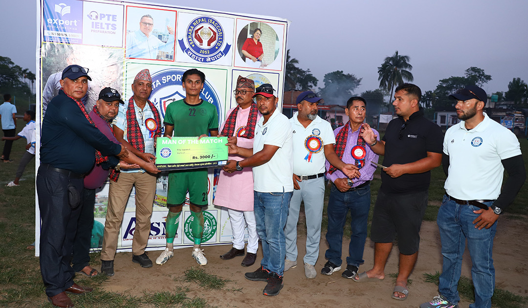 आजको खेलको प्लेयर अफ द म्याच झापाका गोल किप्पर योगेश धिमाल भए । उनलाई आजका प्रमुख अतिथि देवी संग्रौलाले नगद तीन हजार प्रदान गरे ।