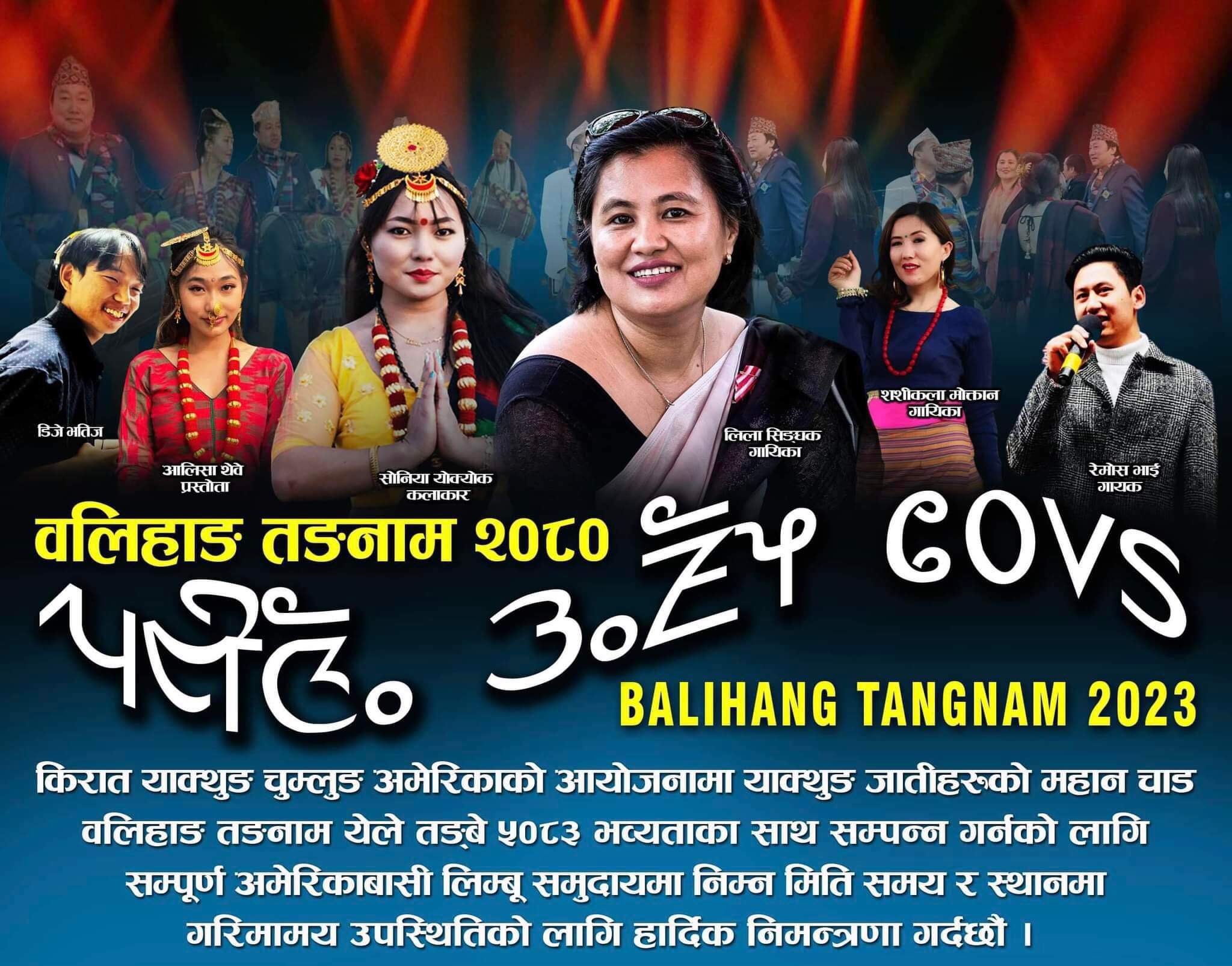 काठमाडौं । किरात याक्थुङ चुम्लुङ अमेरिकाले वलिहाङ तङनाम २०८० भव्य रुपमा मनाउने भएको छ । शुभ दीपावली पर्वलाई चुम्लुङ अमेरिकाले वलिहाङ तङनाम येले तङ्बे ५०८३ को रुपमा विभिन्न कार्यक्रमको आयोजना गरि मनाउने भएको हो । कार्यक्रमलाई सफल बनाउन चुम्लुङले सम्पूर्ण अमेरिकामा रहेका लिम्बू समुदायमा आह्वान गरेको छ । कार्यक्रम नोभेम्बर १० मा गुल्शन टेर्रेसमा हुने छ ।