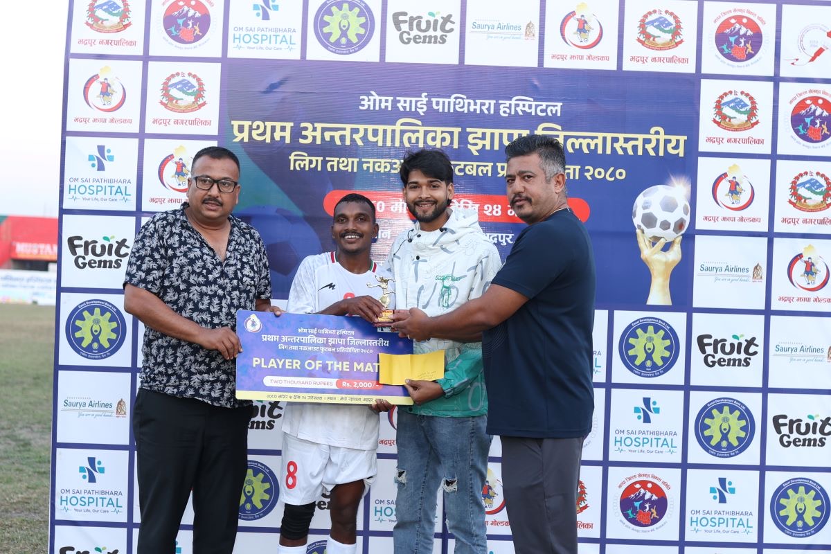 खेलको प्लेयर अफ दि म्याच झापाका उमेश मुर्मू भए । उनलाई गोल्डकपका अध्यक्ष दिपेश ढकाल, वरिष्ठ उपाध्यक्ष आदित्य पराजुली र सौजन्यकर्ता रविन्द्र बस्नेतले नगद दुई हजार र ट्रफी प्रदान गरे ।