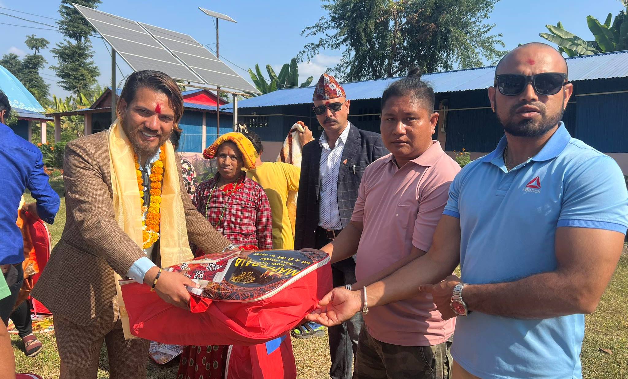 अमेरिकाबाट झापाको दमकस्थित बेलडाँगी शरणार्थी शिविर आइपुगेका मेघराज सुवेदीले सेजल एण्ड सिस्टर अमेरिकाका तर्फबाट बिहीबार शिविरका मानिसहरुलाई न्यानो कम्बल वितरण गरेका हुन् ।