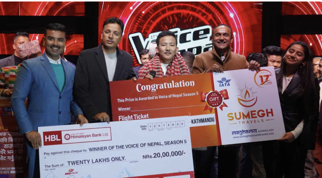 काठमाडौं । द भ्वाइस अफ नेपाल सिजन ५ को उपाधि इलामका बिनोद राईले जितेका छन् । शुक्रबार राती ललितपुरको गोदावरीस्थित सनराइज हलमा आयोजित ग्राण्ड फिनालेमा उनले उपाधि जितेका हुन् ।