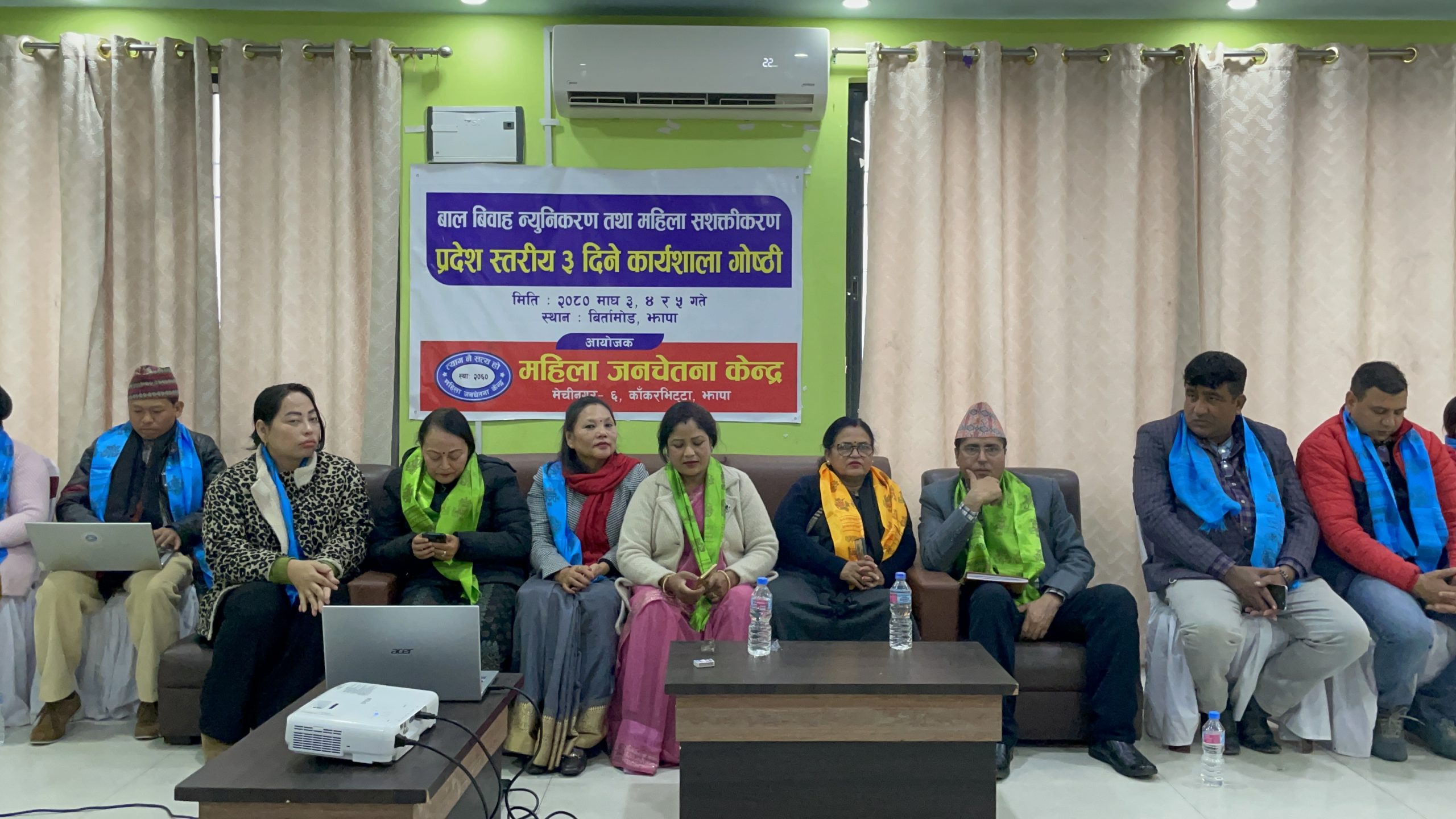 ३ माघ,बिर्तामोड । झापाको बिर्तामोडमा प्रदेश स्तरीय बाल बिवाह न्युनिकरण तथा महिला सशक्तिकरण कार्यशाला सुरू भएको छ ।