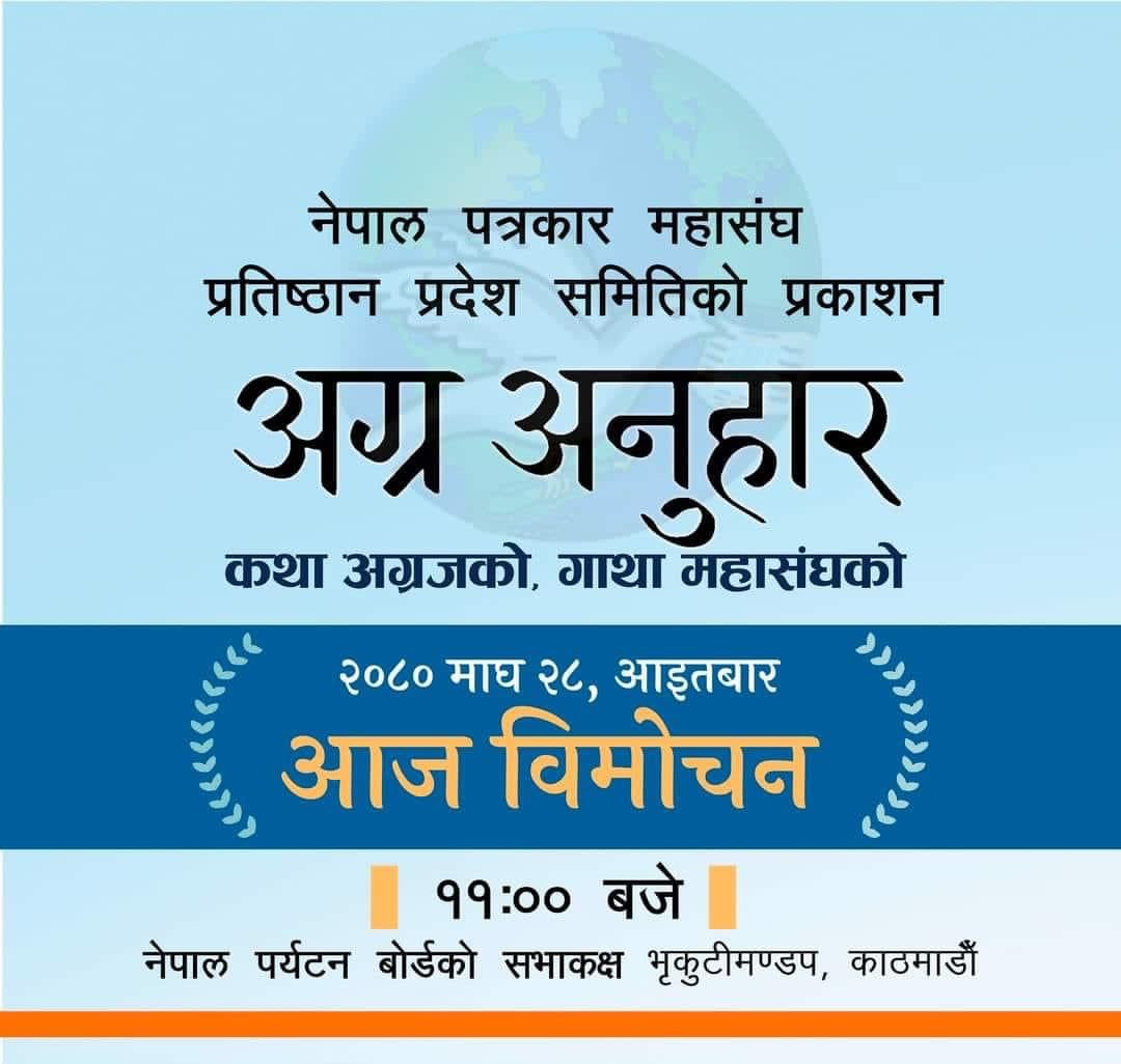 नेपाल पत्रकार महासंघ बागमती प्रतिष्ठान प्रदेशले आज गर्ने भनेको ‘अग्रज अनुहार’ पुस्तक बिमोचन कार्यक्रम प्रभावित हुने भएको छ ।